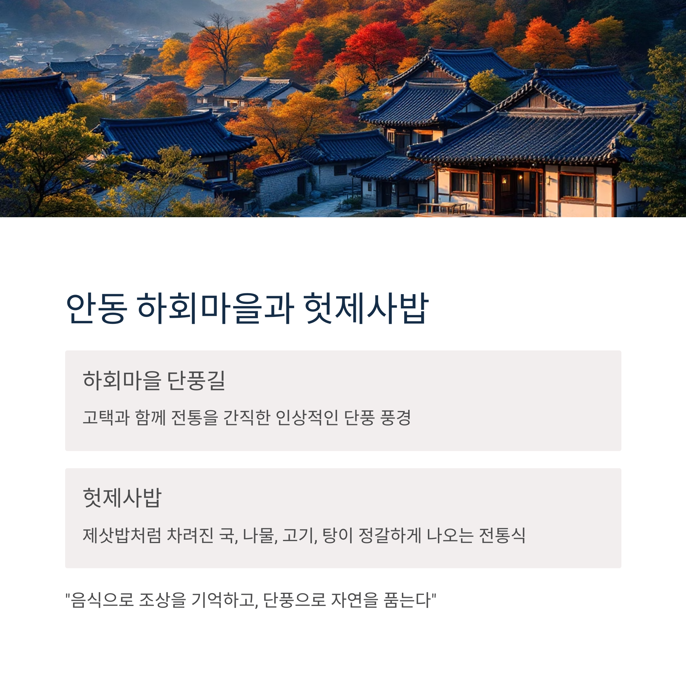 "음식으로 조상을 기억하고, 단풍으로 자연을 품는다"는 뜻이