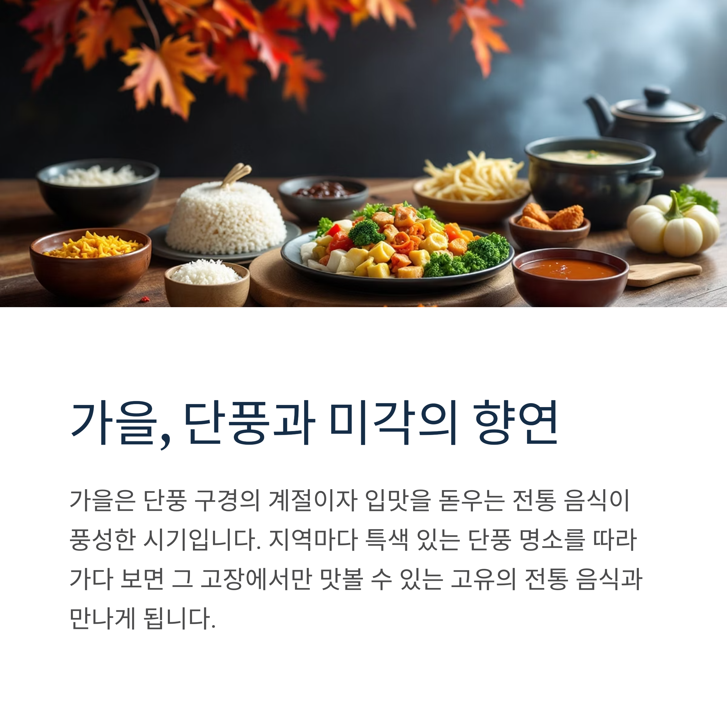 가을은 단풍 구경의 계절이자 입맛을 돋우는 전통 음식이 풍성한 시기입니다.