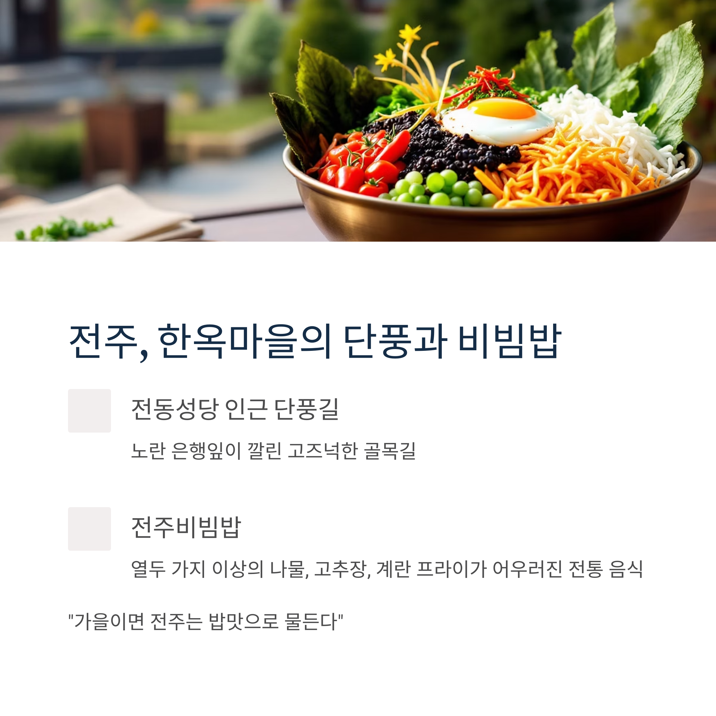 전주비빔밥의 향기가 허기진 마음을 이끕니다.