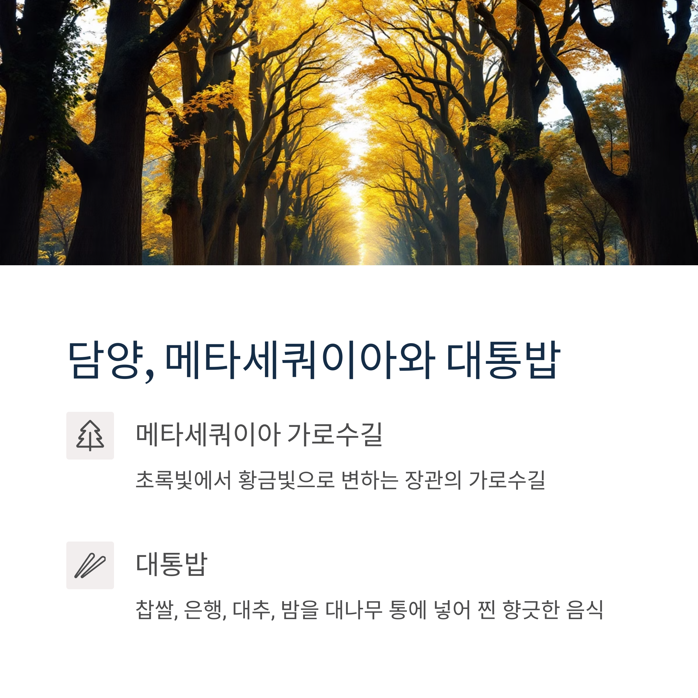 담양 – 메타세쿼이아 길과 대통밥