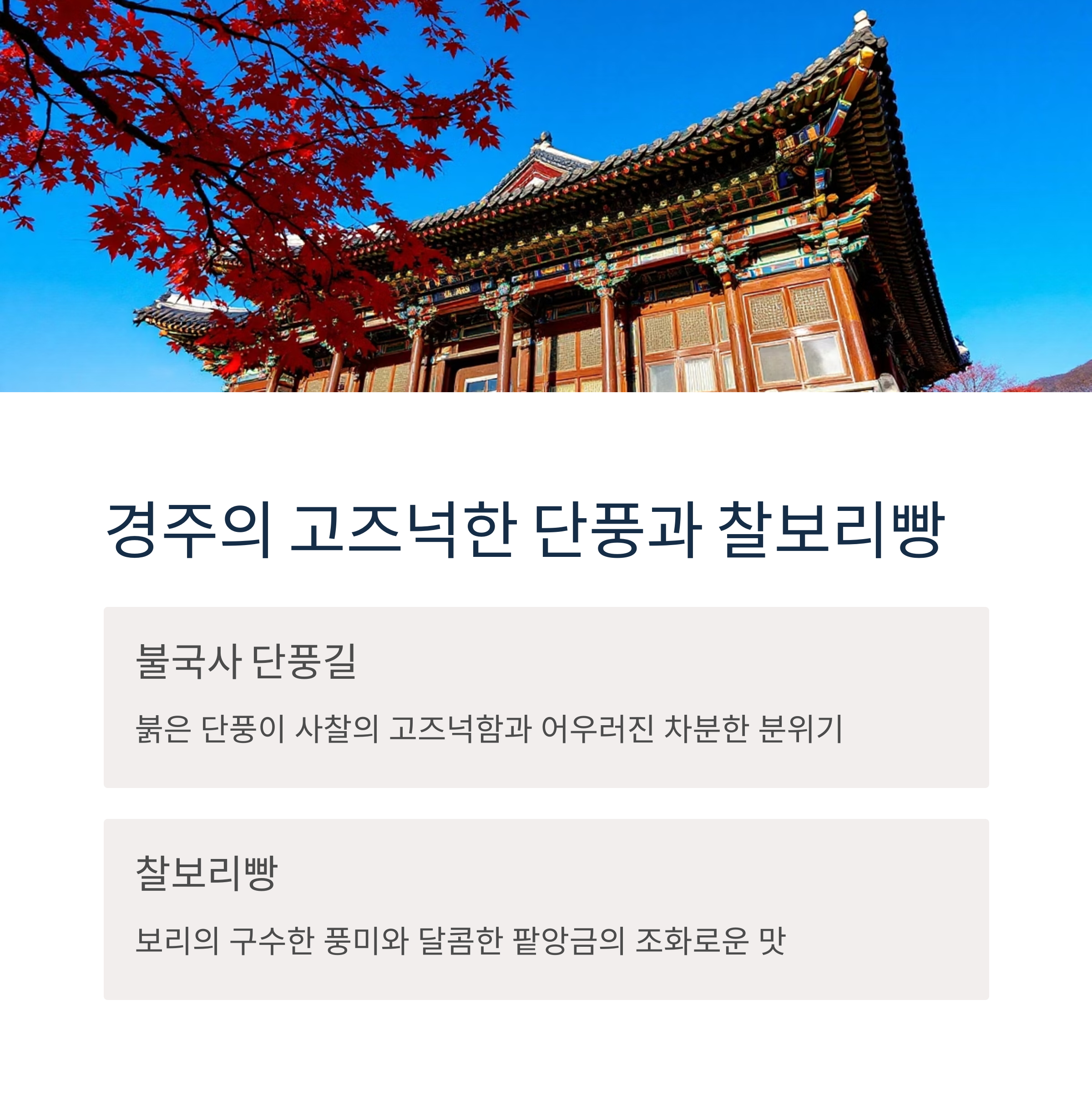 | 경주 | 불국사 단풍길 | 찰보리빵 |