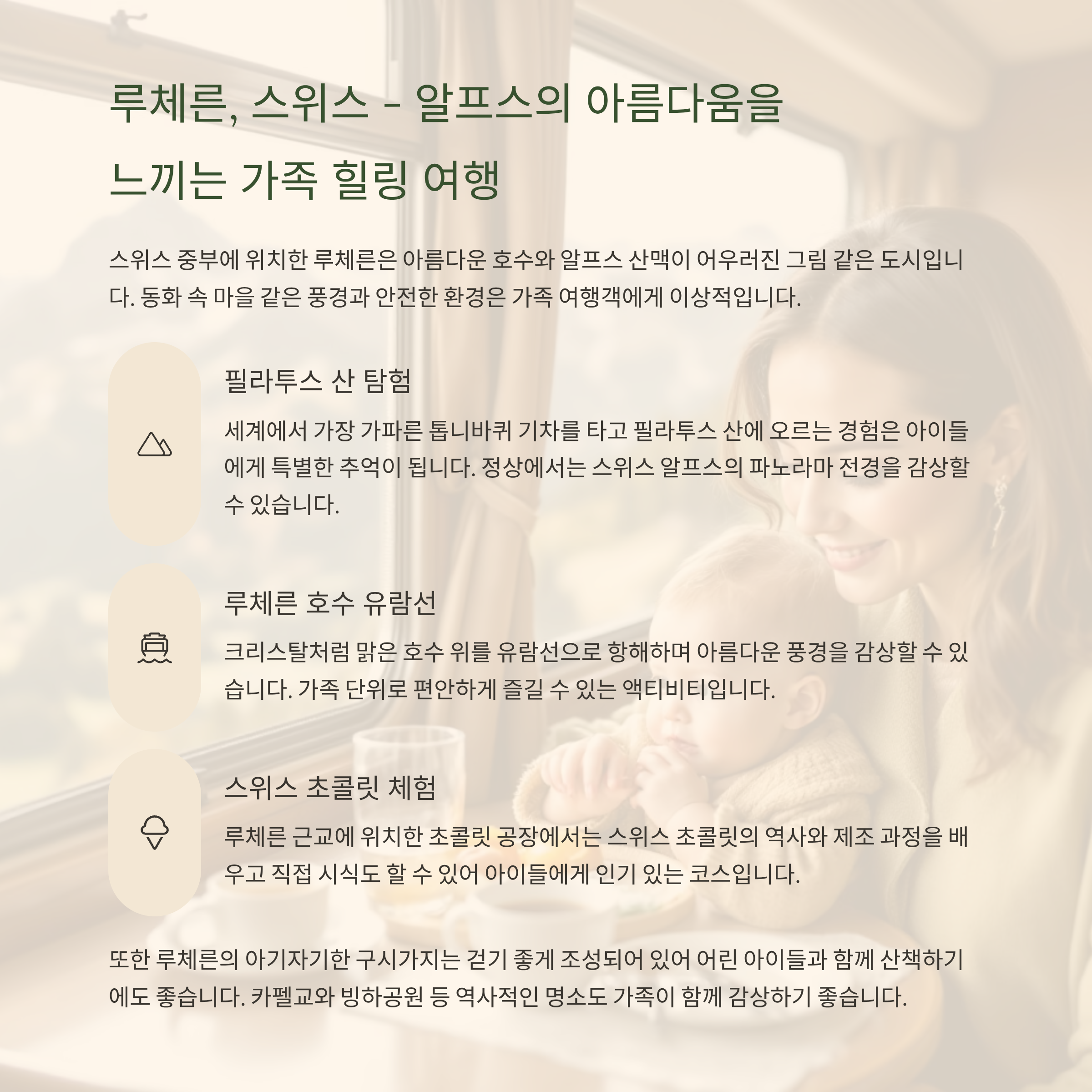 필라투스 산을 오르는 톱니바퀴 기차, 유람선 투어, 고즈넉한 마을 산책은