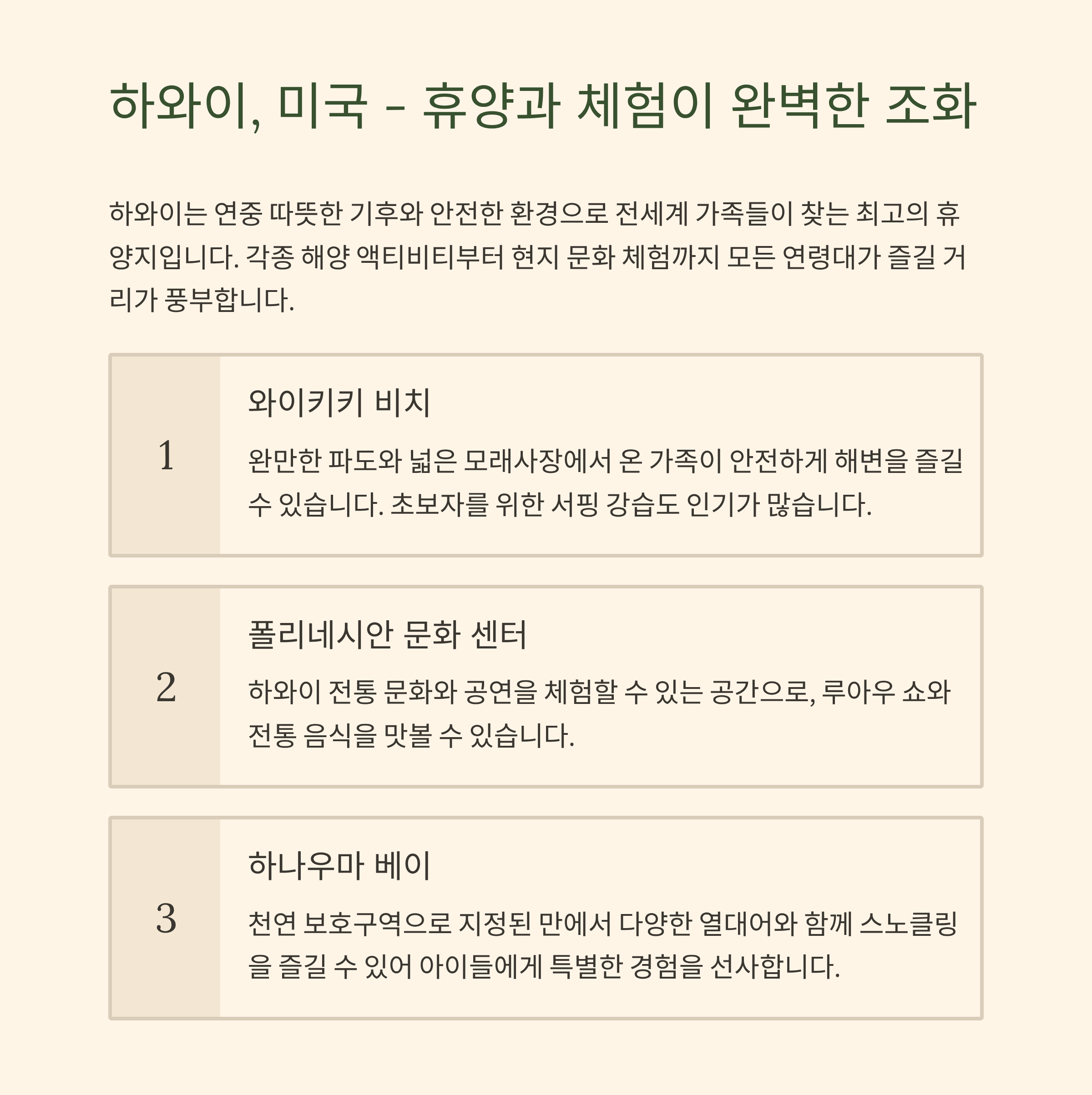 하와이는 세계적인 가족 여행지로 유명합니다.