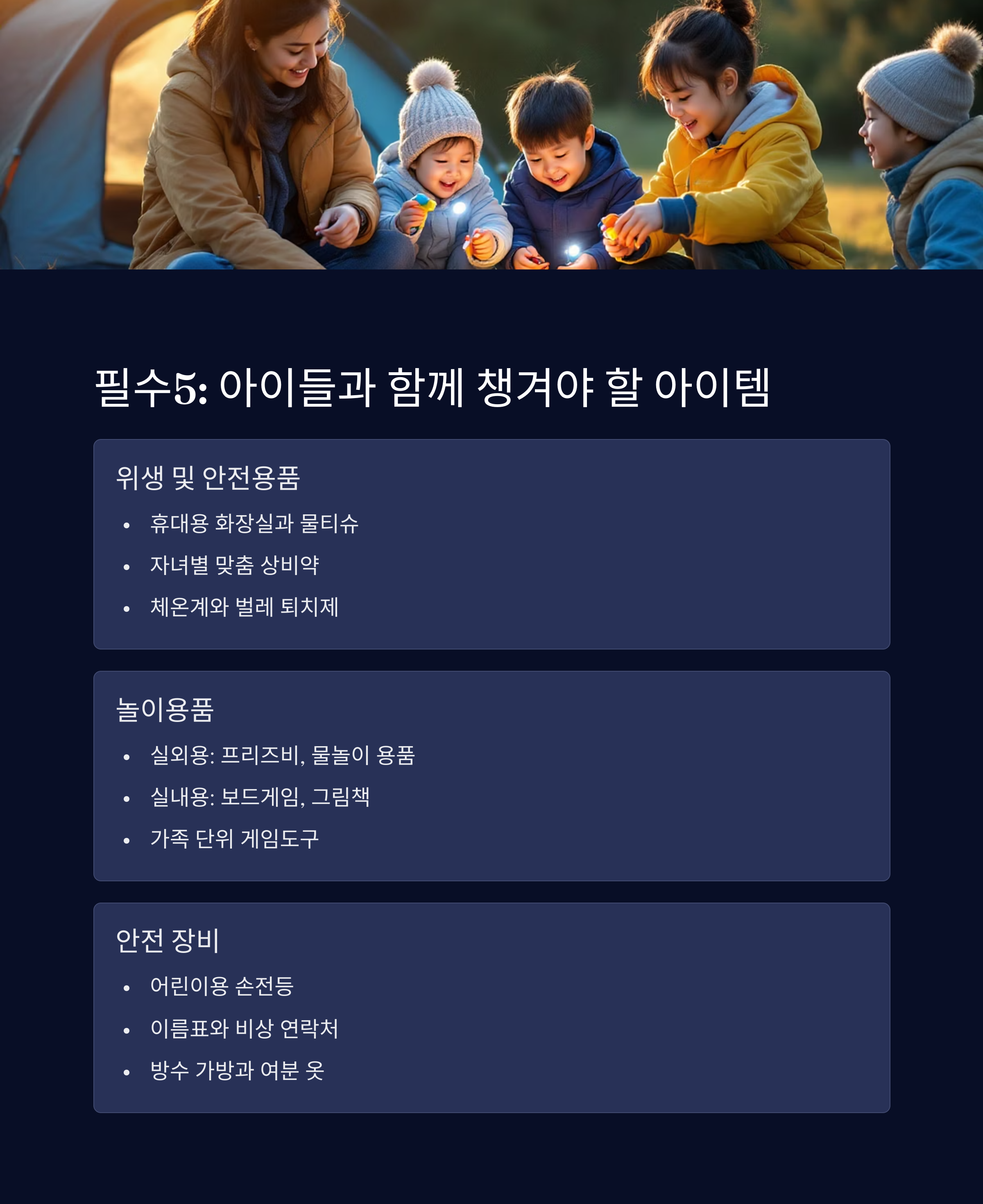 가족 캠핑에 아이들이 함께라면 추가 준비물이 필요합니다.