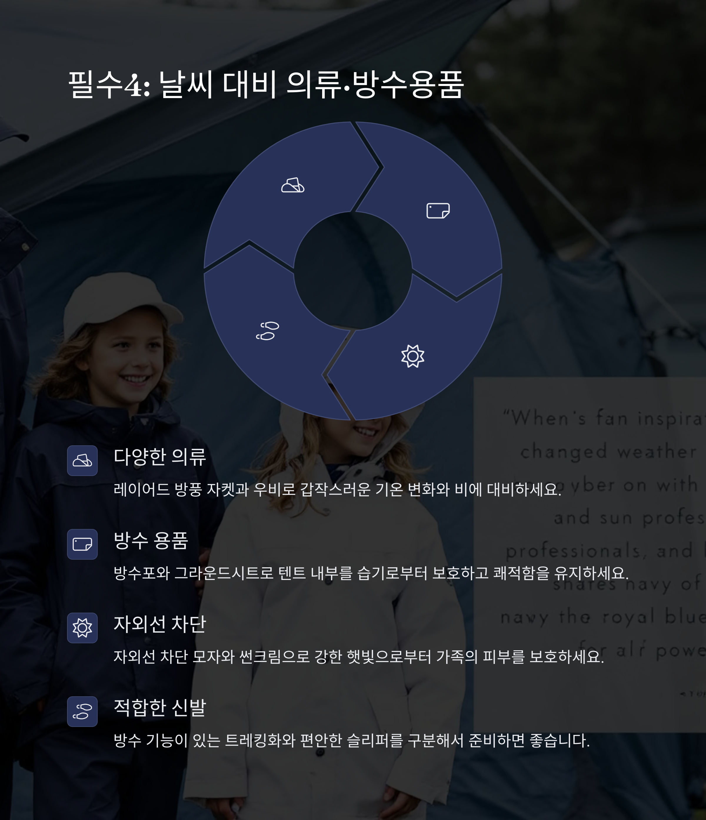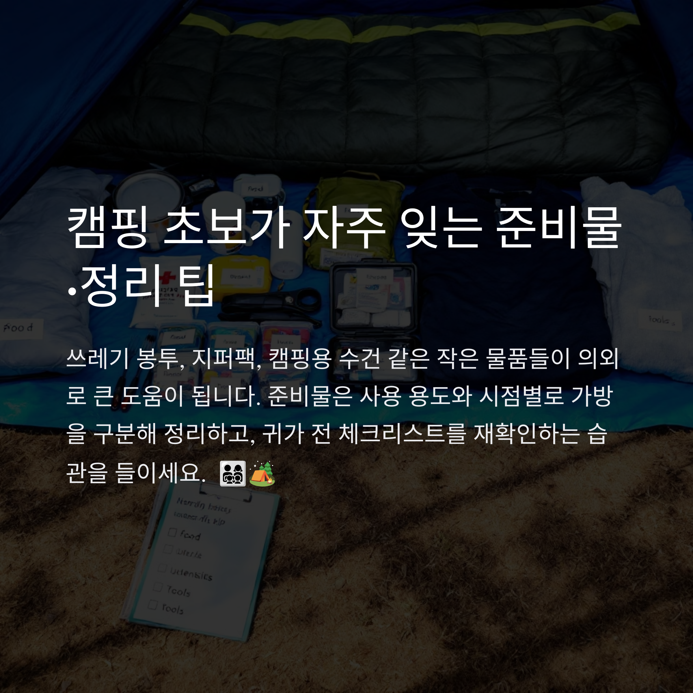 "준비물 하나로 캠핑의 질이 달라집니다"