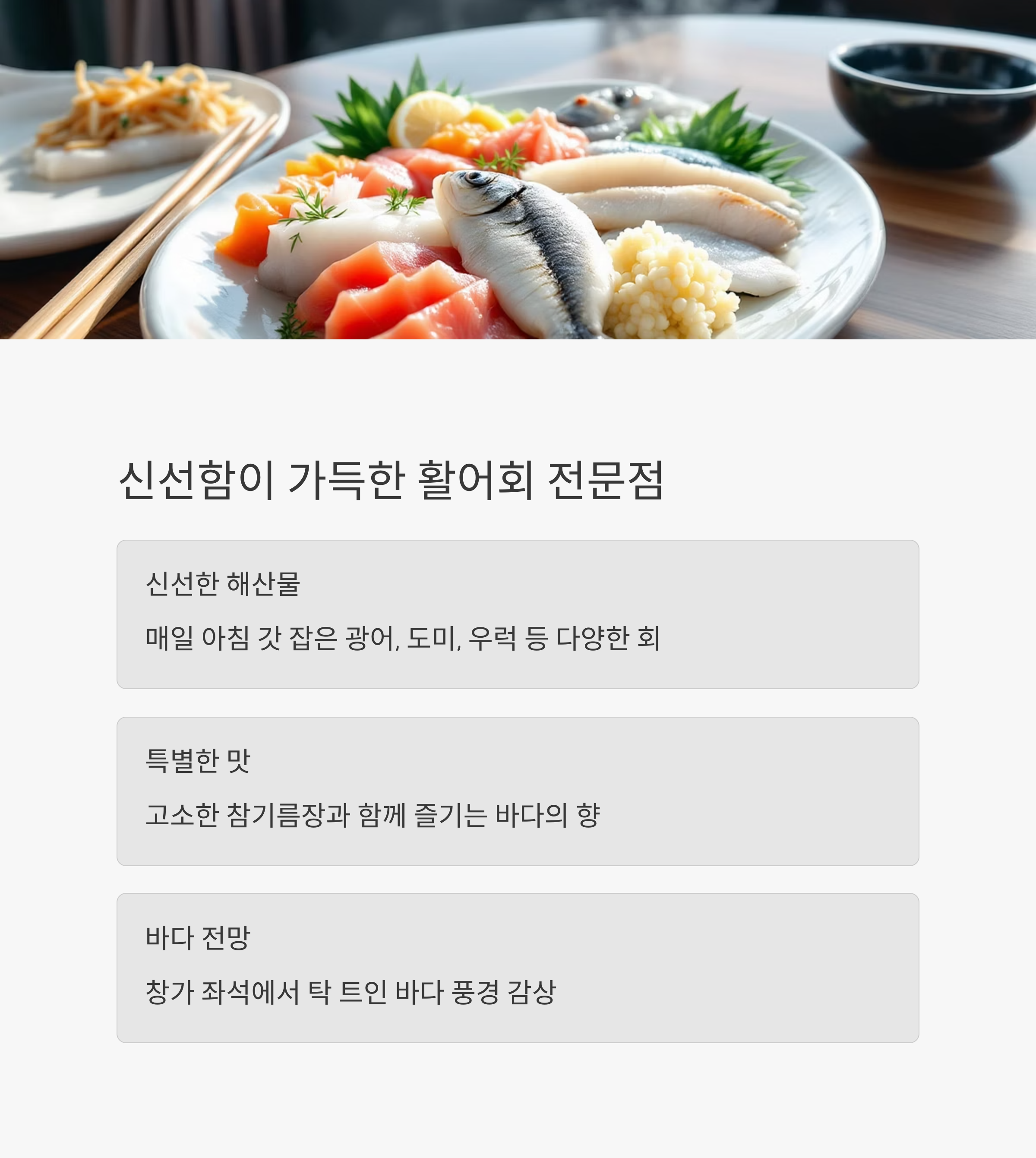 신선함이 가득한 활어회 전문점, 바다의 맛을 그대로