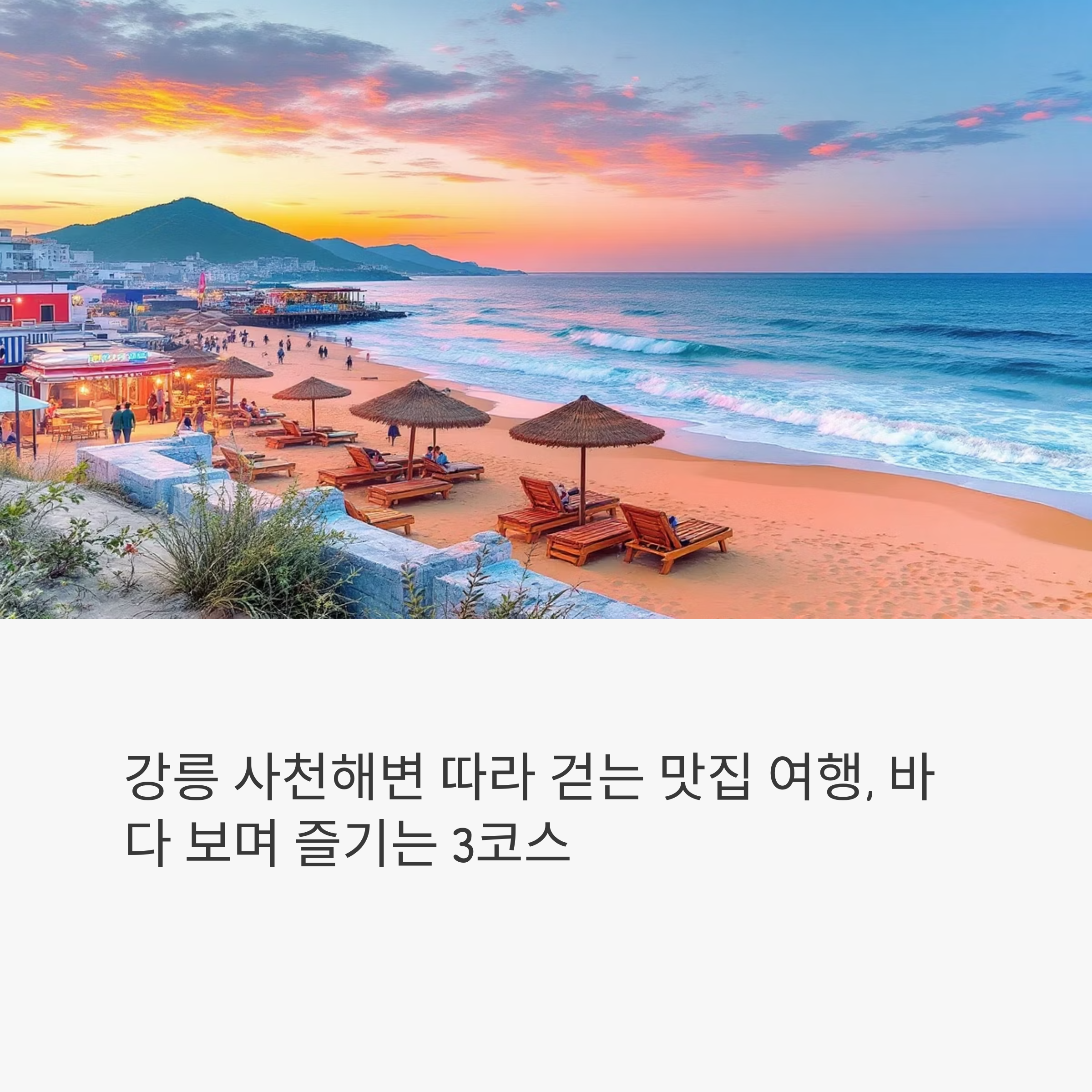 강릉 사천해변은 조용한 파도 소리와 넓은 바다 풍경으로 많은 이들에게 사랑받는 곳입니다. 오늘은 사천해변을 따라 걷다 만날 수 있는 특별한 맛집 3곳을 소개해 드리겠습니다. 신선한 해산물 요리부터 디저트 카페까지, 바다를 바라보며 즐기는 코스로 구성했으니 여행 계획에 참고해 보시길 바랍니다.