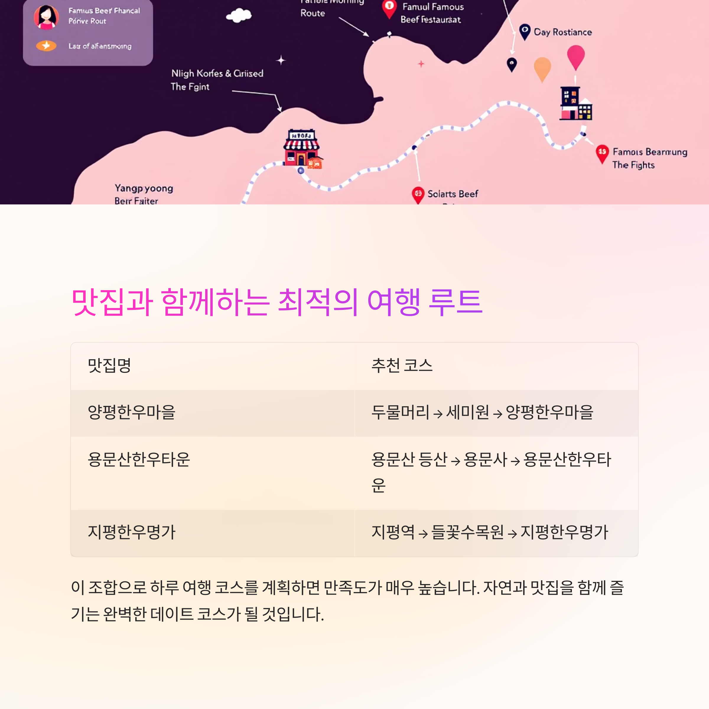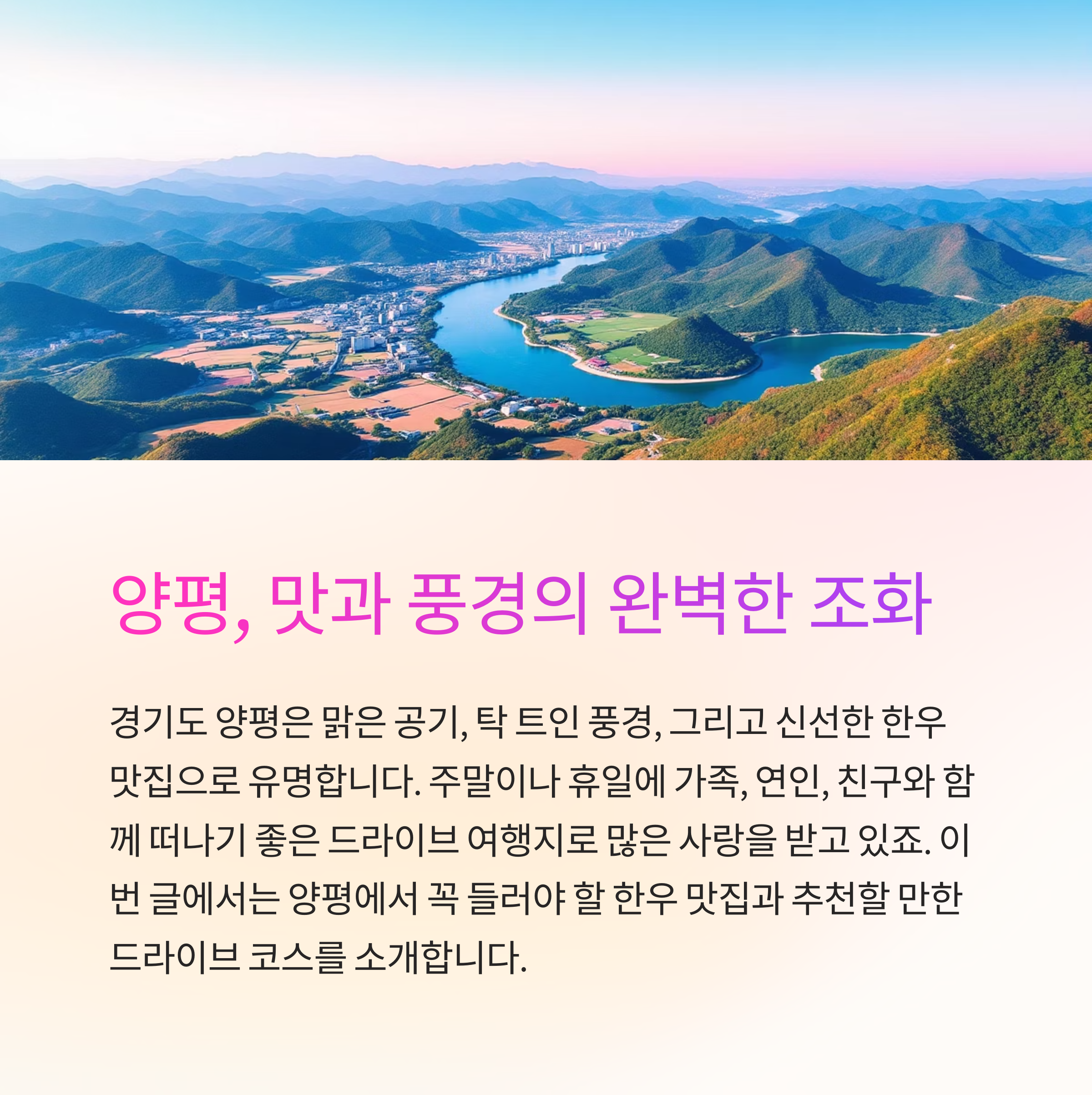 이번 글에서는 양평에서 꼭 들러야 할 한우 맛집과 추천할 만한 드라이브 코스를 소개합니다.