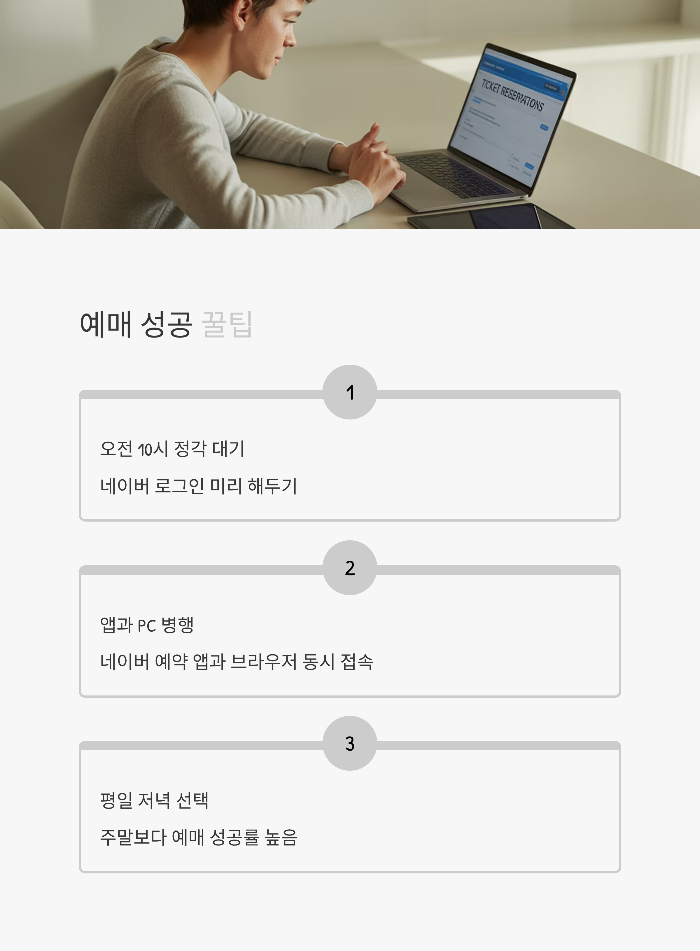 네이버 예약을 통해 예매가 가능하며, 시간에 맞춰 접속하지 않으면 순식간에 매진될 수 있으니 미리 알람 설정은 필수입니다.