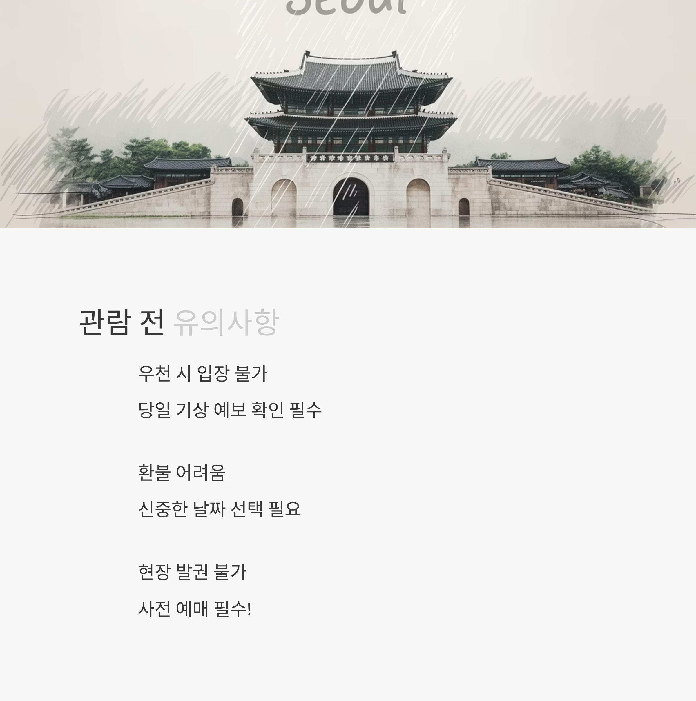 우천 시 입장이 불가능할 수 있으니, 당일 기상 예보를 꼭 확인하세요.
