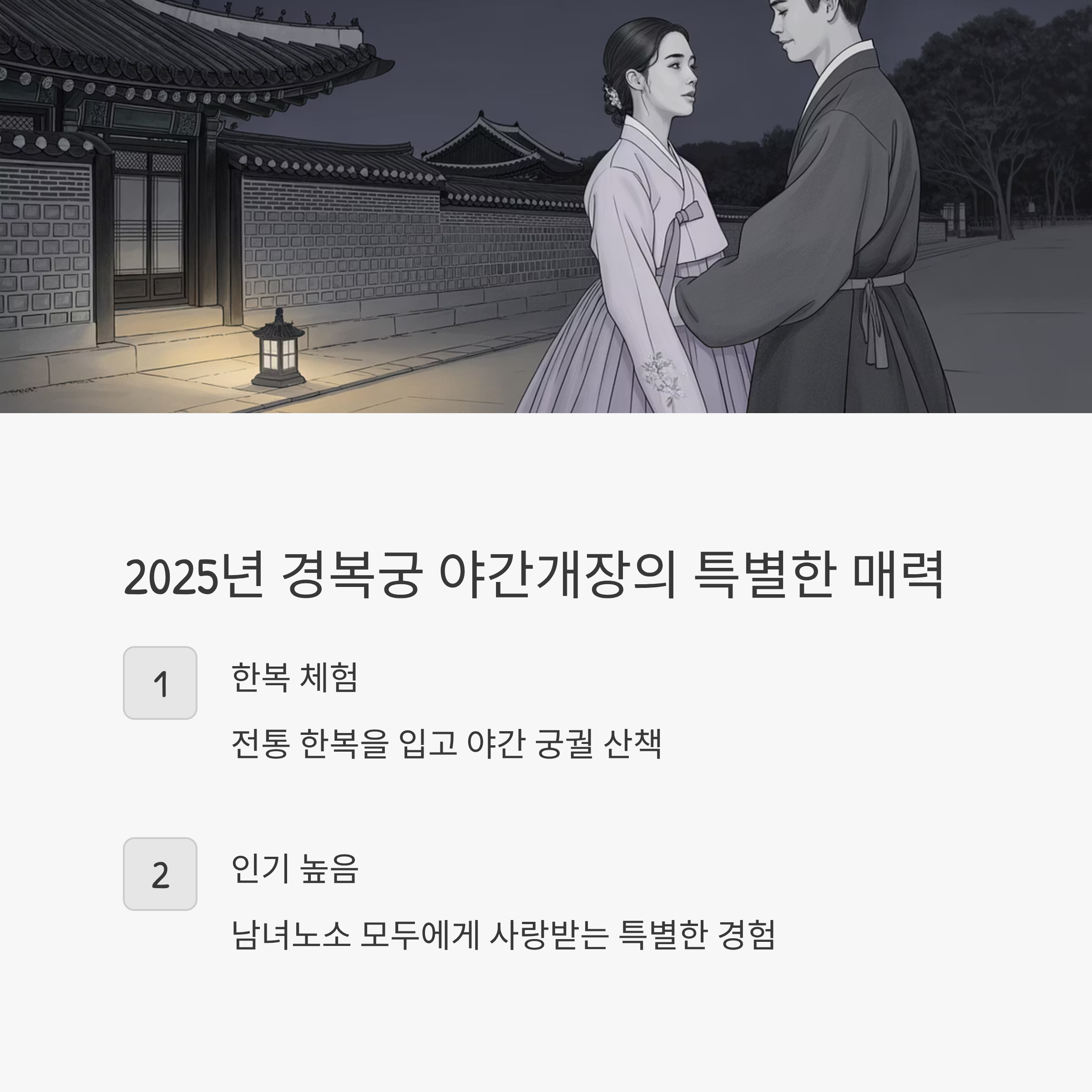 아래는 2025 하반기 기준 경복궁 야간개장 주요 정보입니다.