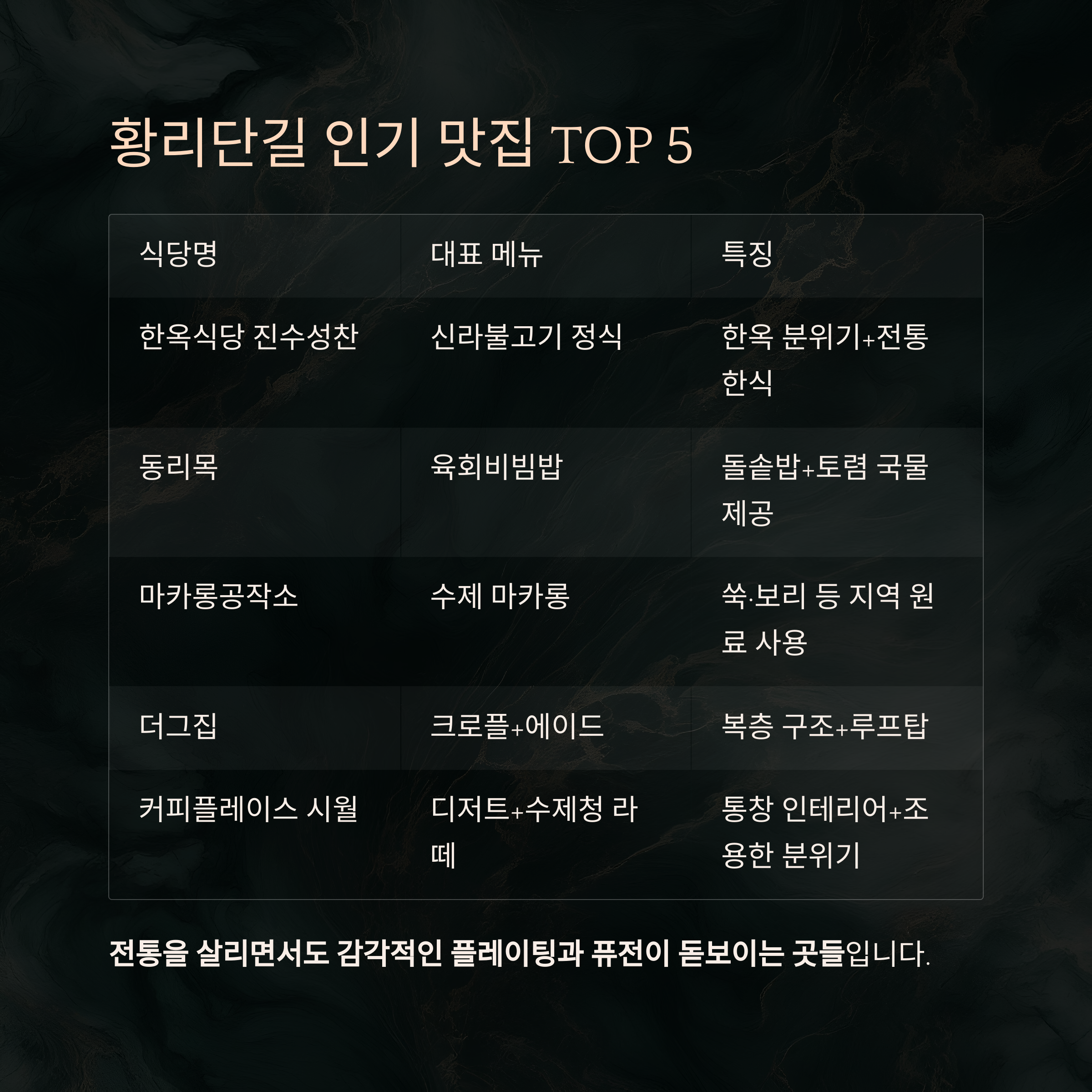 황리단길의 대표 맛집과 하루 코스로 즐기는 미식 탐방법을 소개합니다.