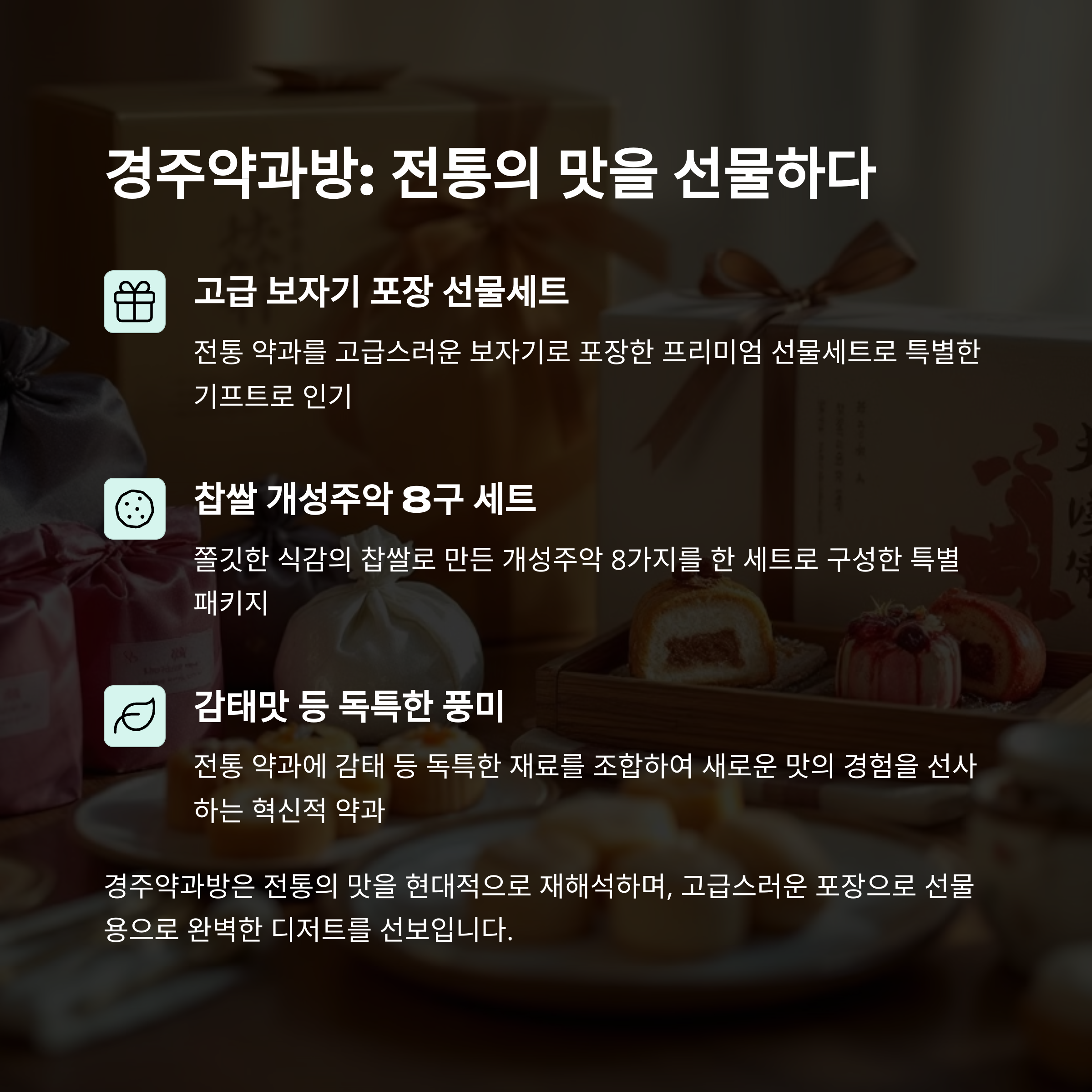 | 경주 여행 기념품으로 최적의 선택 | 전통과 감성을 담은 고급 디저트 | 선물하기 좋은 감각적 패키지와 맛 |