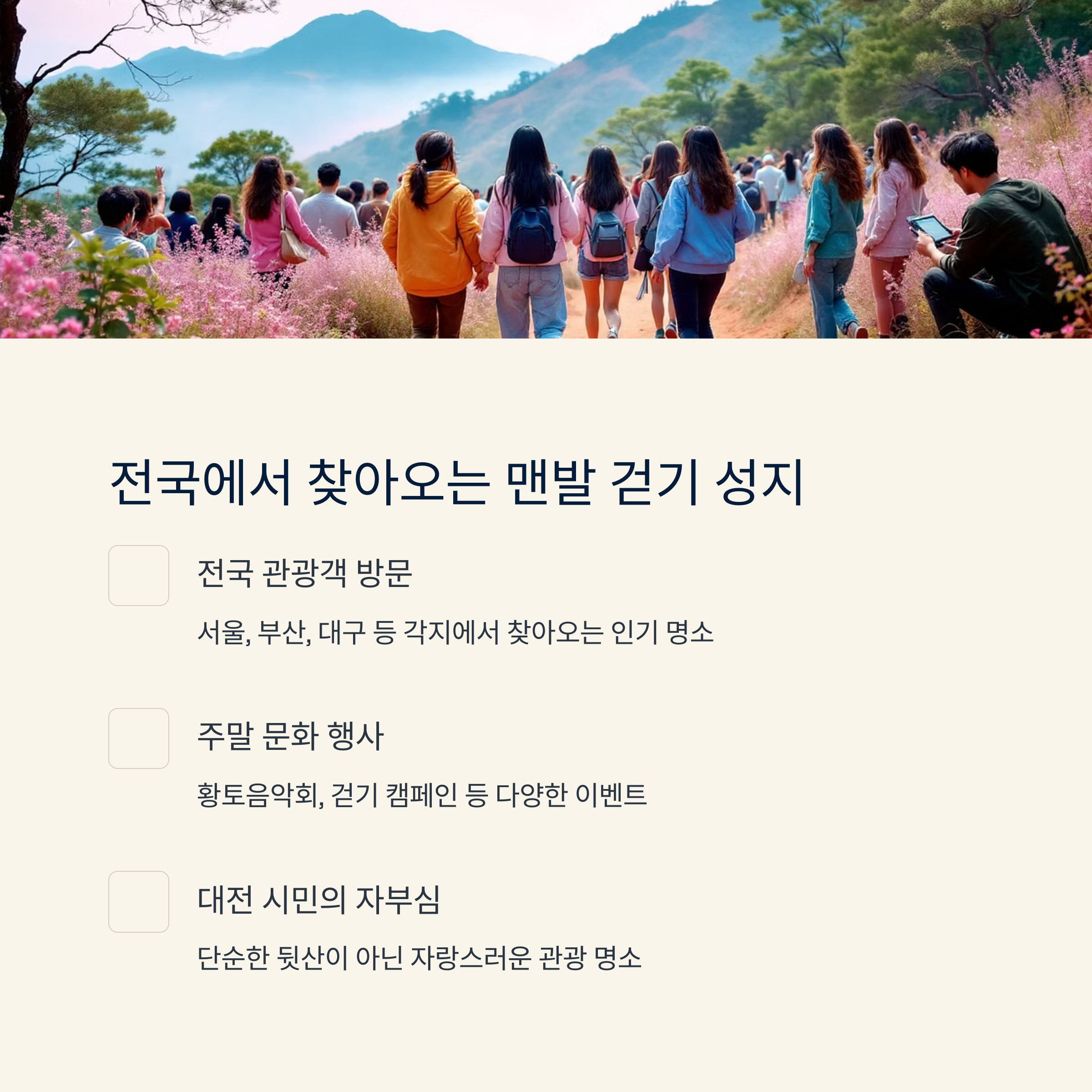 - 무리한 장거리보다 체력에 맞는 코스 선택