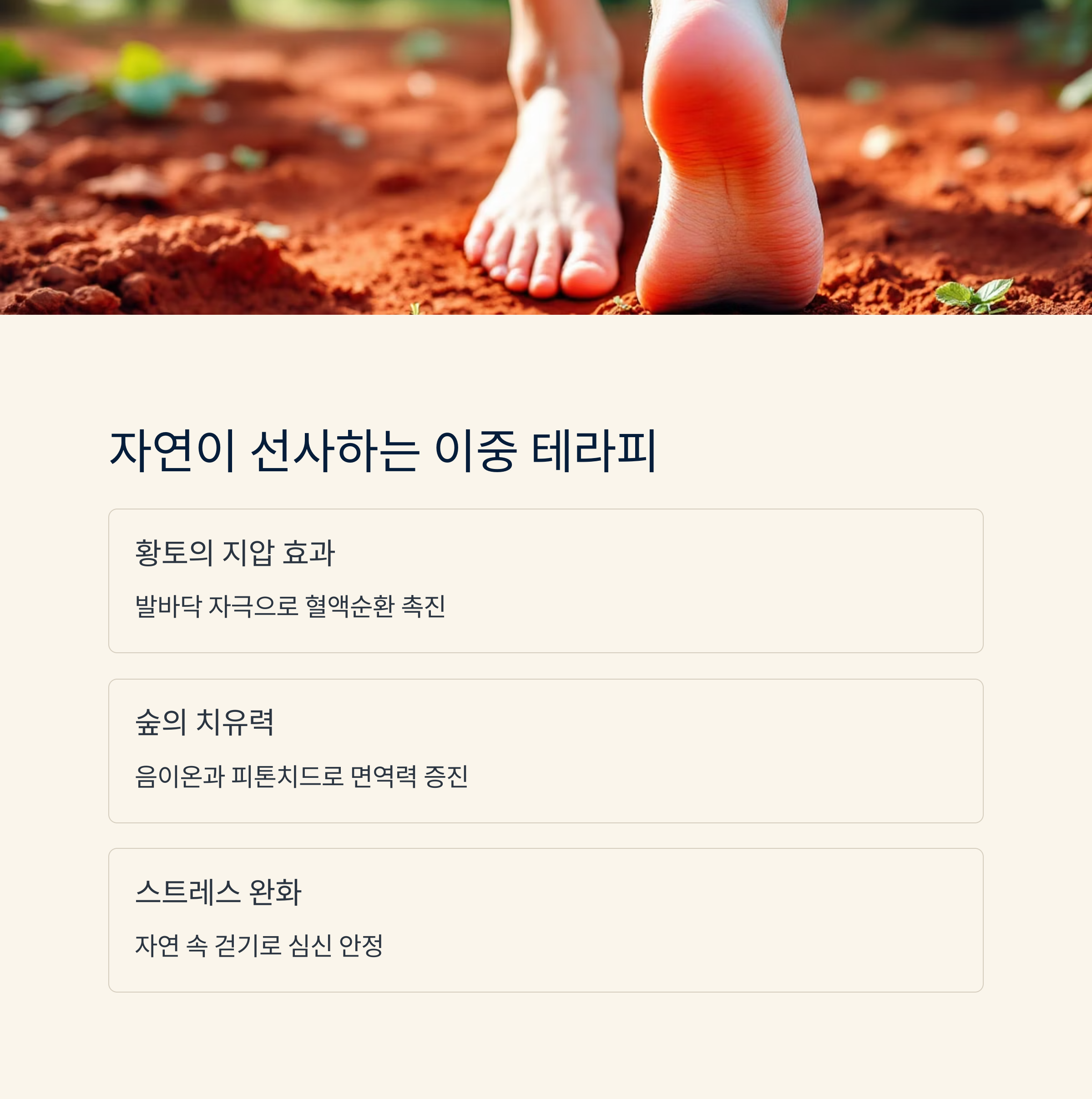 황톳길은 자연의 처방전이 되어준다"라고 말하는 전문가도 있습니다
