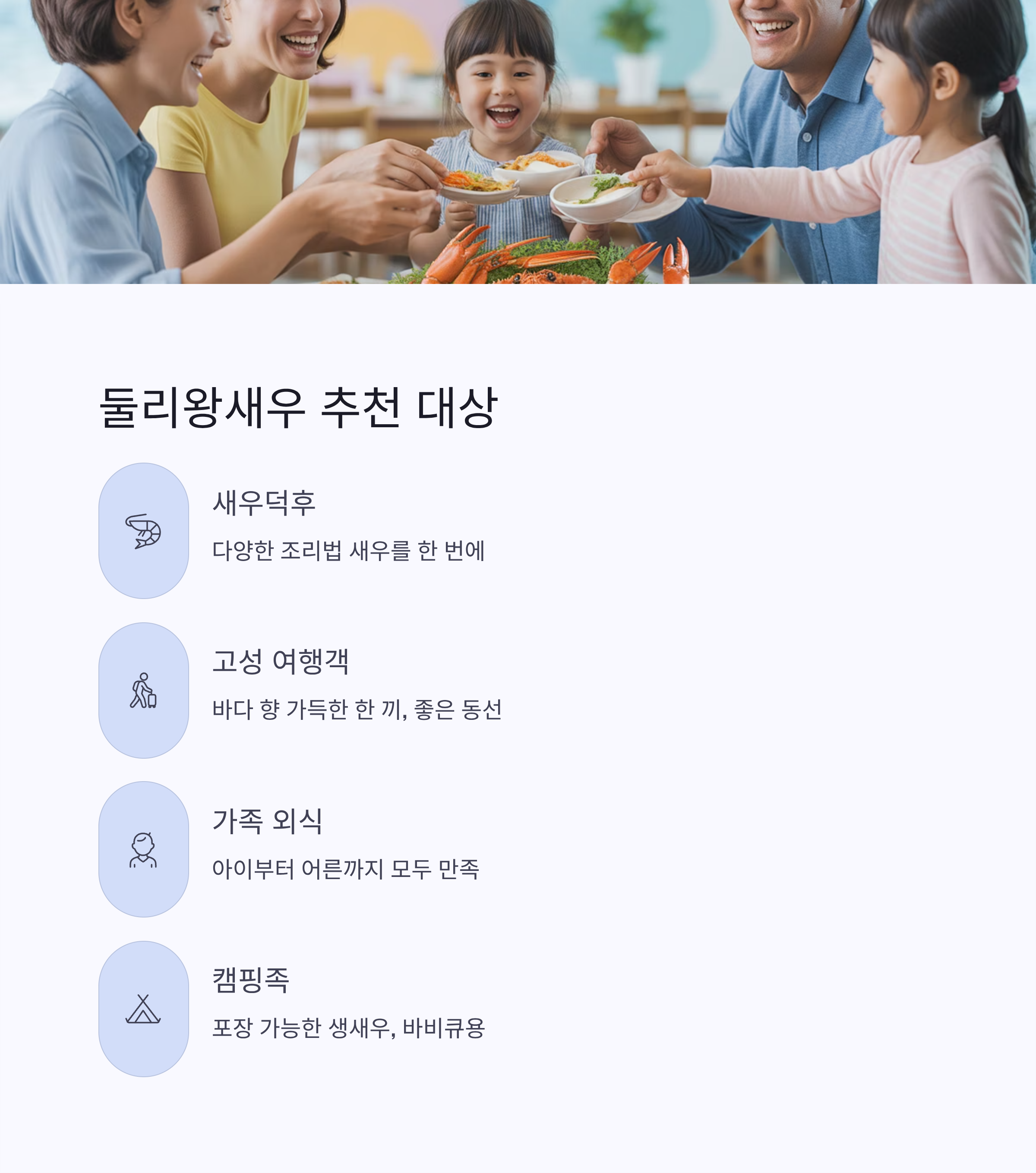 | 캠핑족·차박족 | 포장 가능한 생새우, 바비큐용으로 가져가기 딱 좋음 |