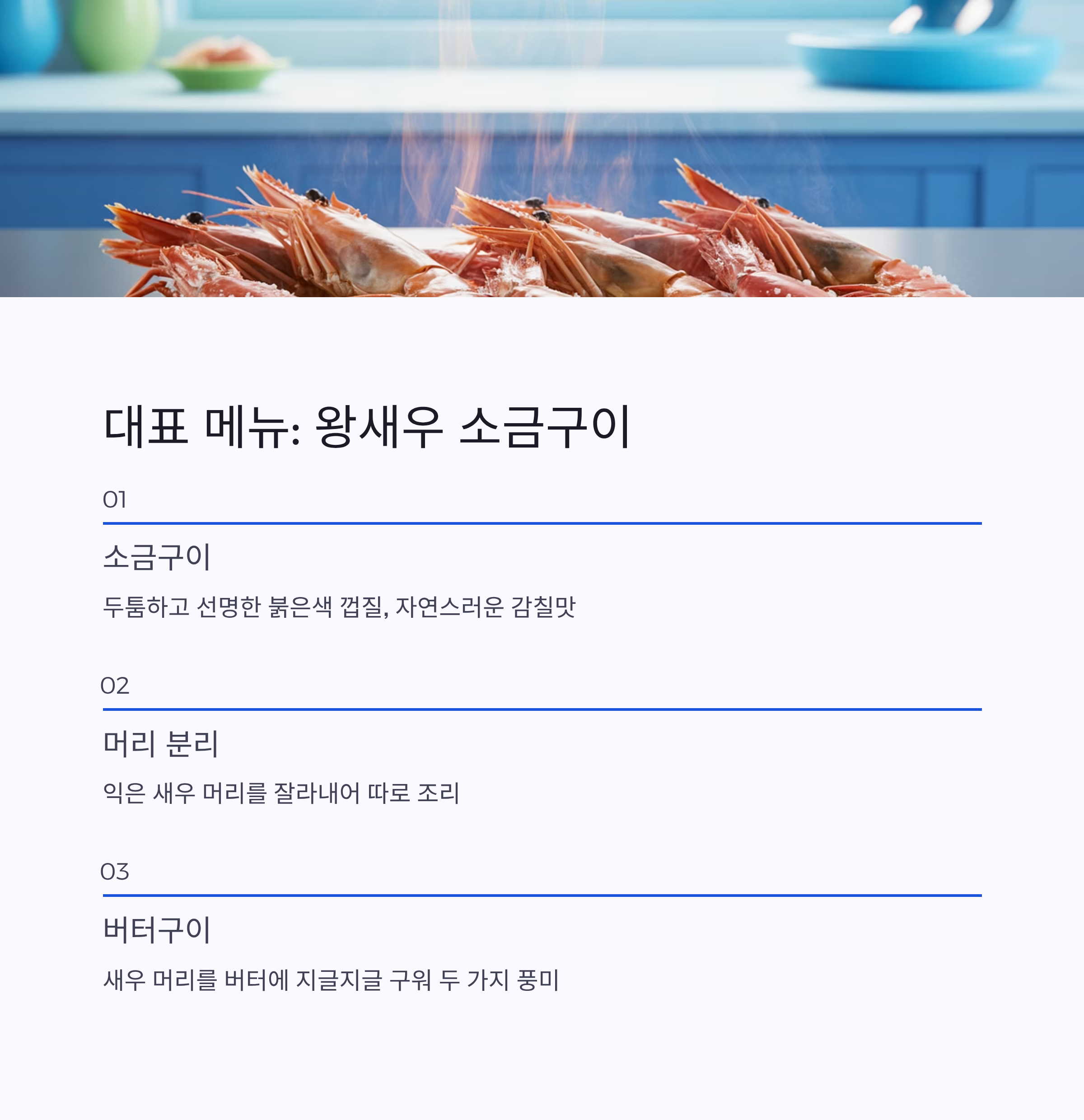 | 새우덕후 | 다양한 조리 방식의 새우를 한 번에 맛볼 수 있는 기회 |