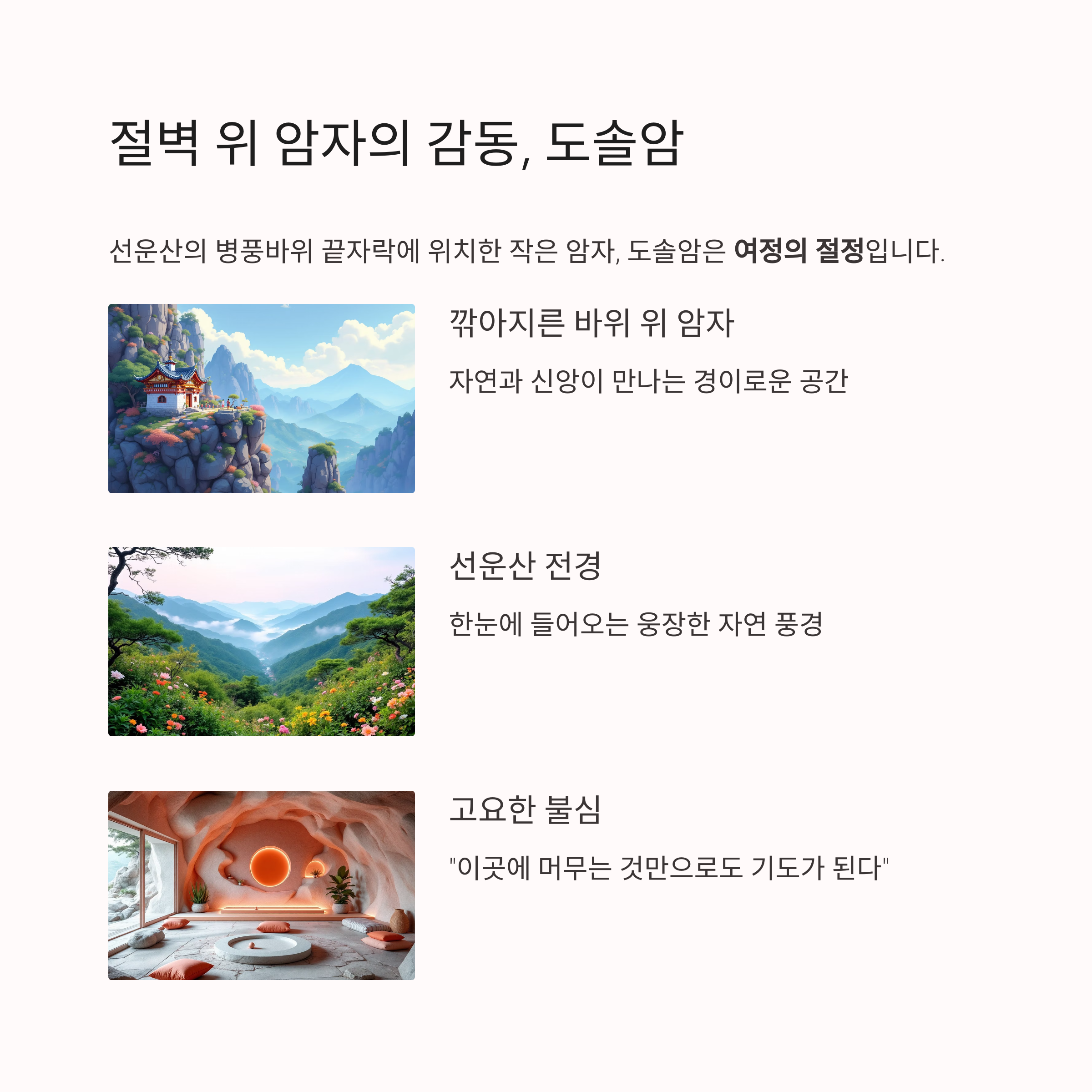도솔암은 단순한 목적지가 아닌 여정의 절정입니다.