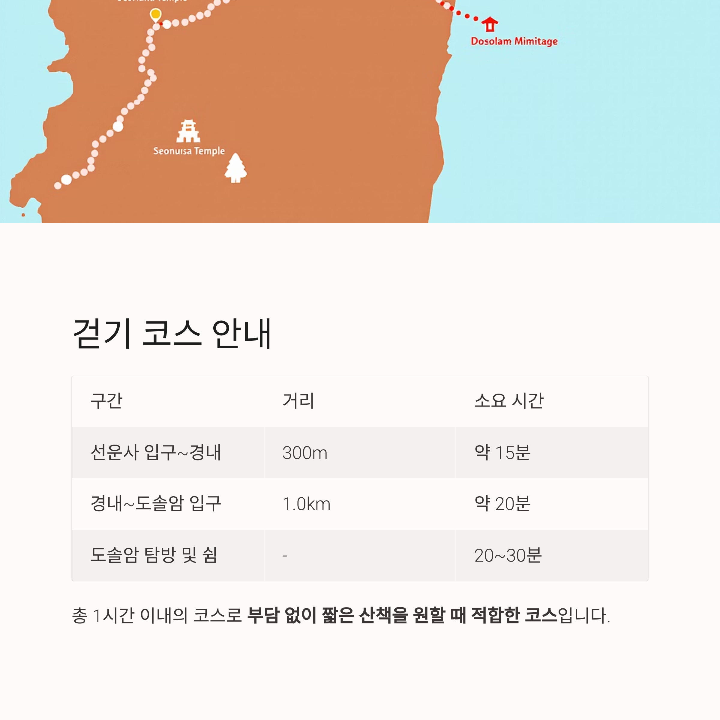 | 경내~도솔암 입구 | 1.0km | 약 20분 |