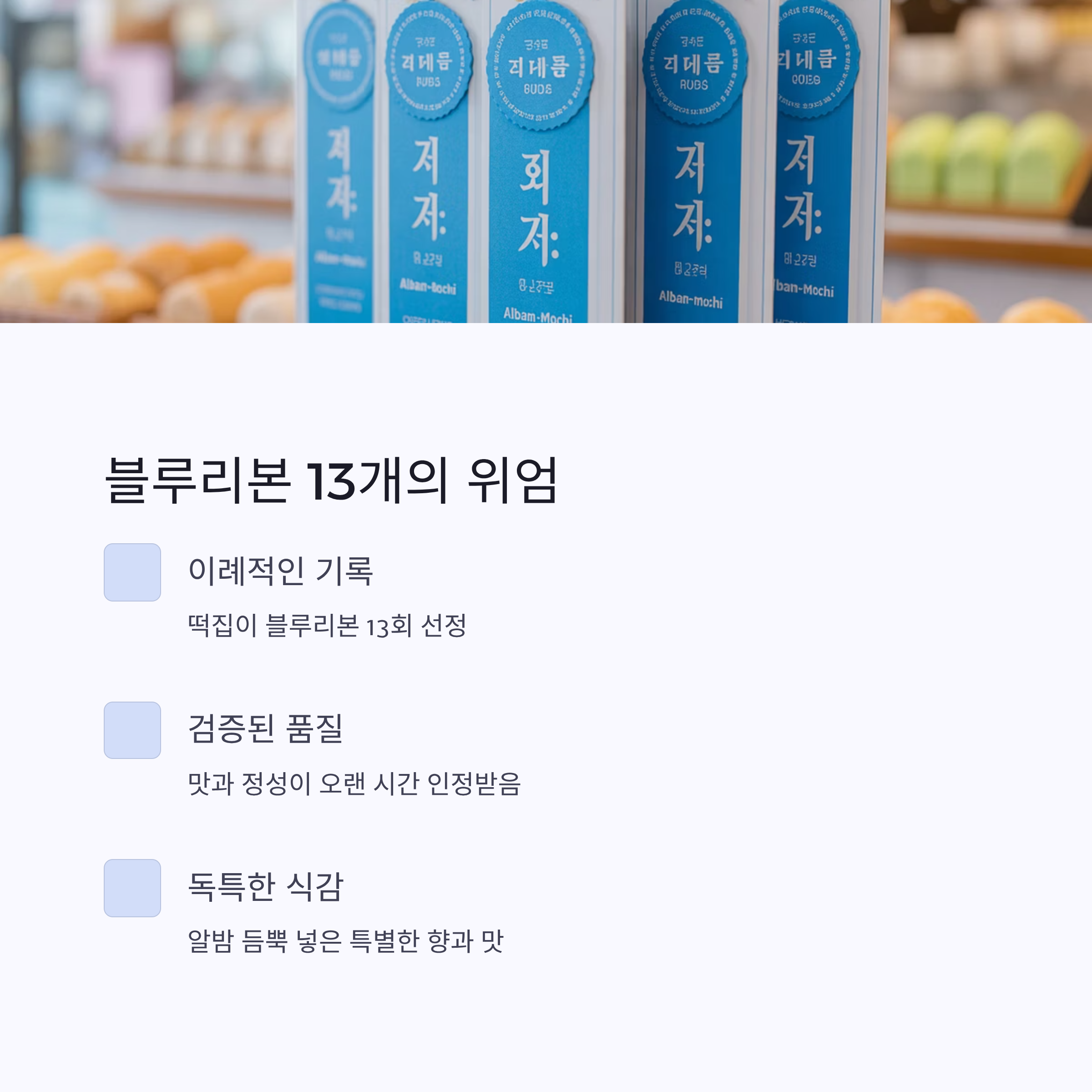 떡집이 맛집 평가서인 블루리본에 13회나 선정된 건 정말 이례적인 일이에요.