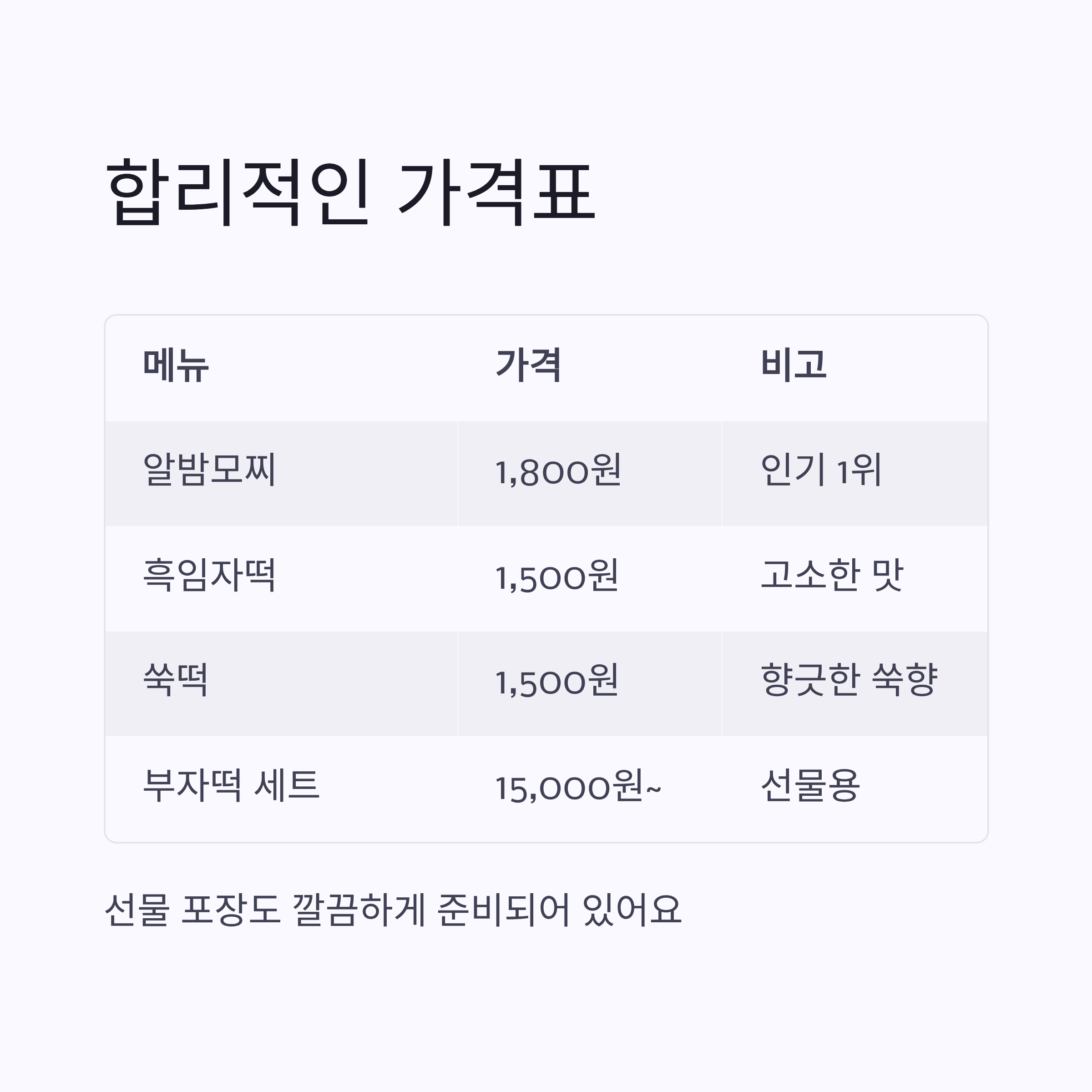 알밤찹쌀떡부터 부자떡까지! 가격, 종류, 택배, 영업시간 완전정리