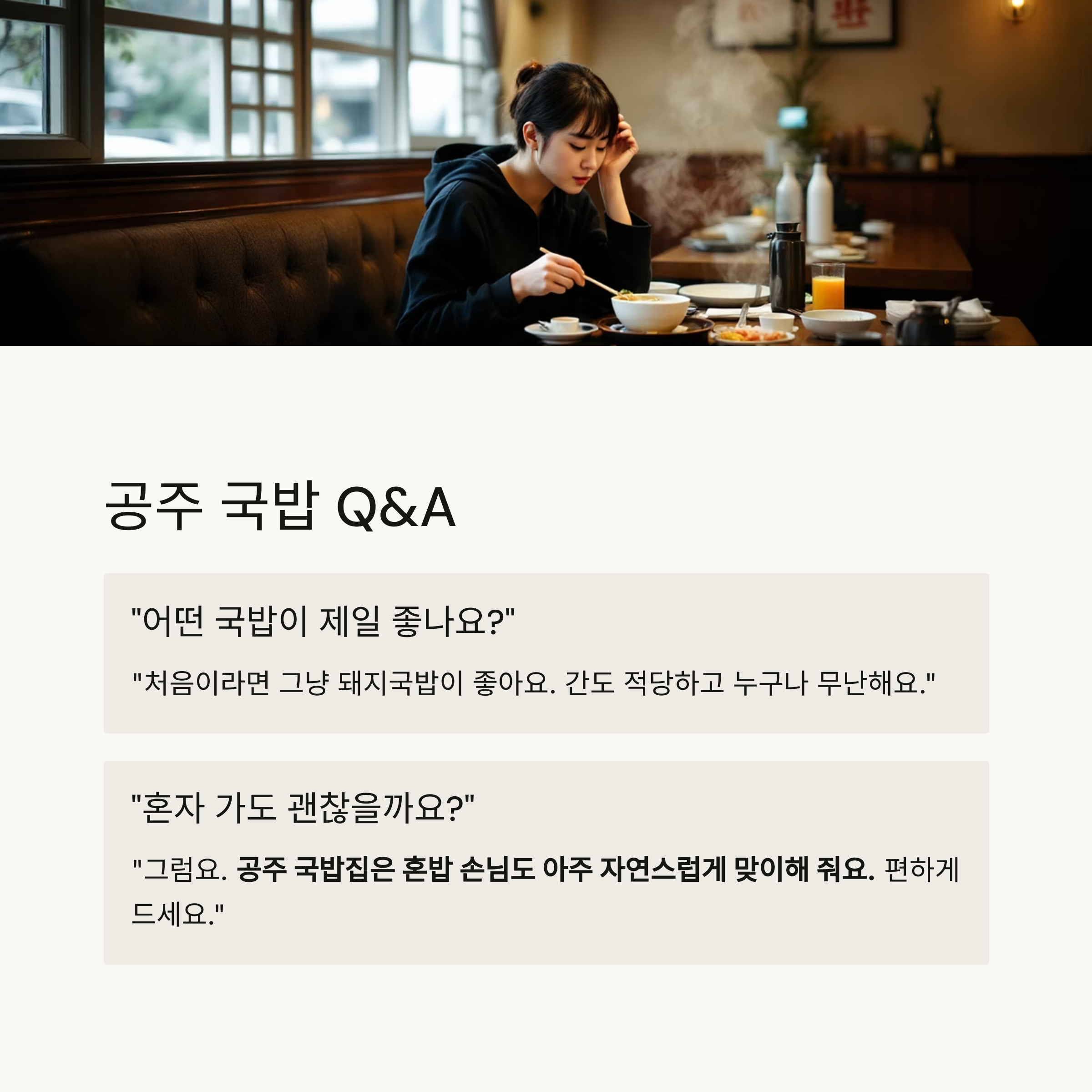 대화체 Q&A: 공주 국밥, 뭘 먹어야 실패하지 않나요?