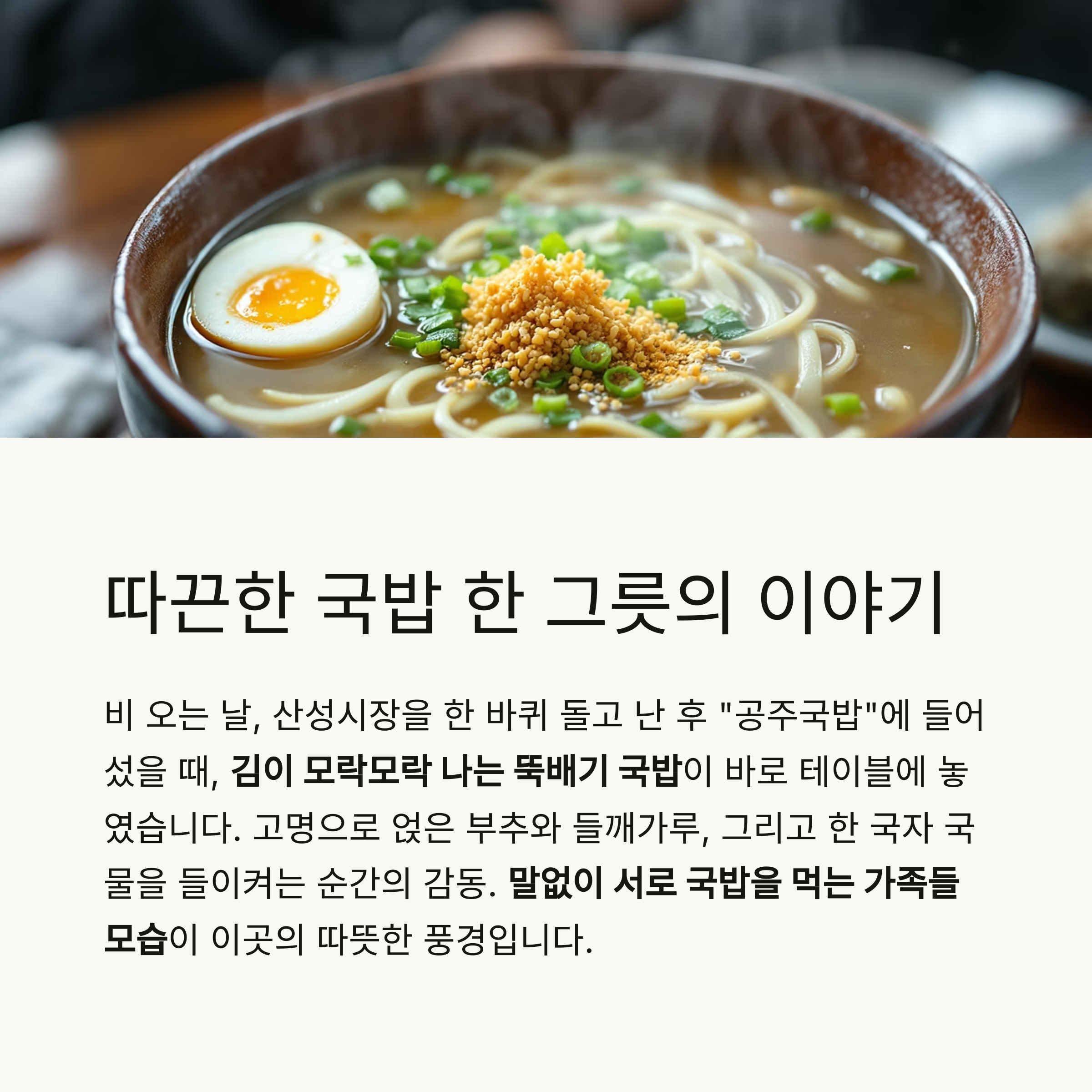 현장 체험기: 따끈한 국밥 한 그릇에 담긴 이야기