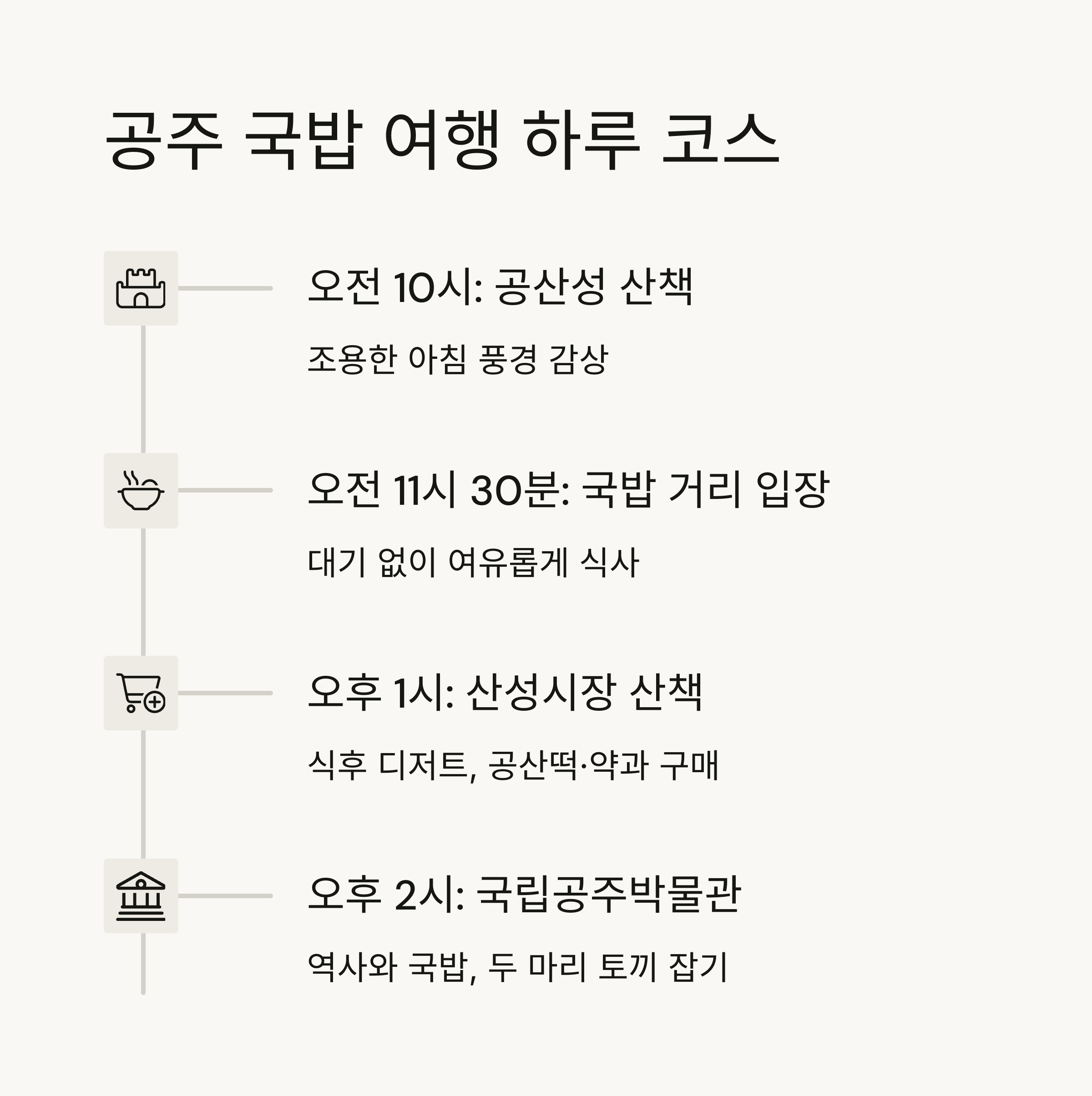 짧은 타임라인: 공주 국밥 여행 하루 코스