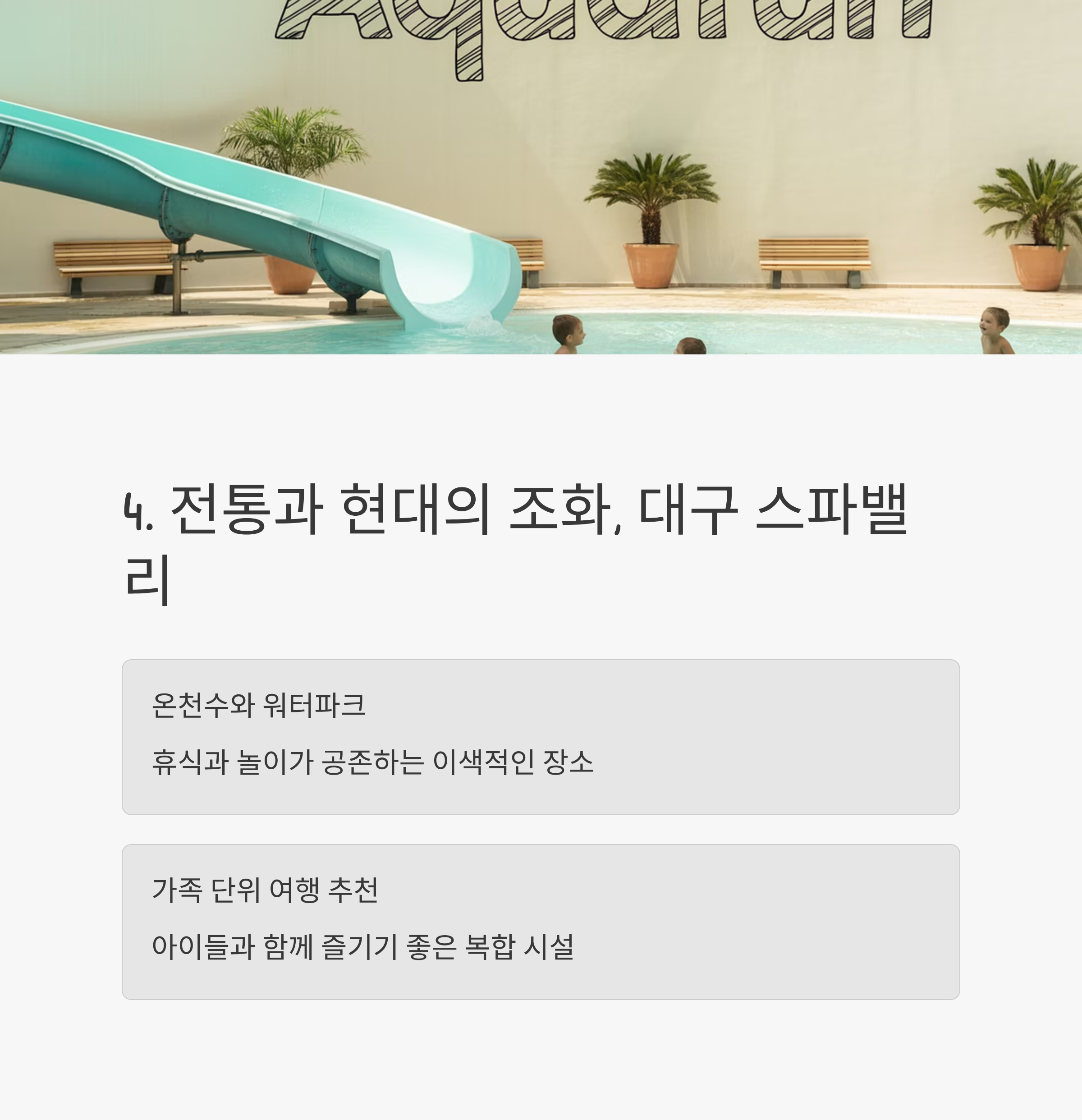 대구에 위치한 스파밸리는 온천수와 워터파크가 함께 운영되는 이색적인 장소입니다.