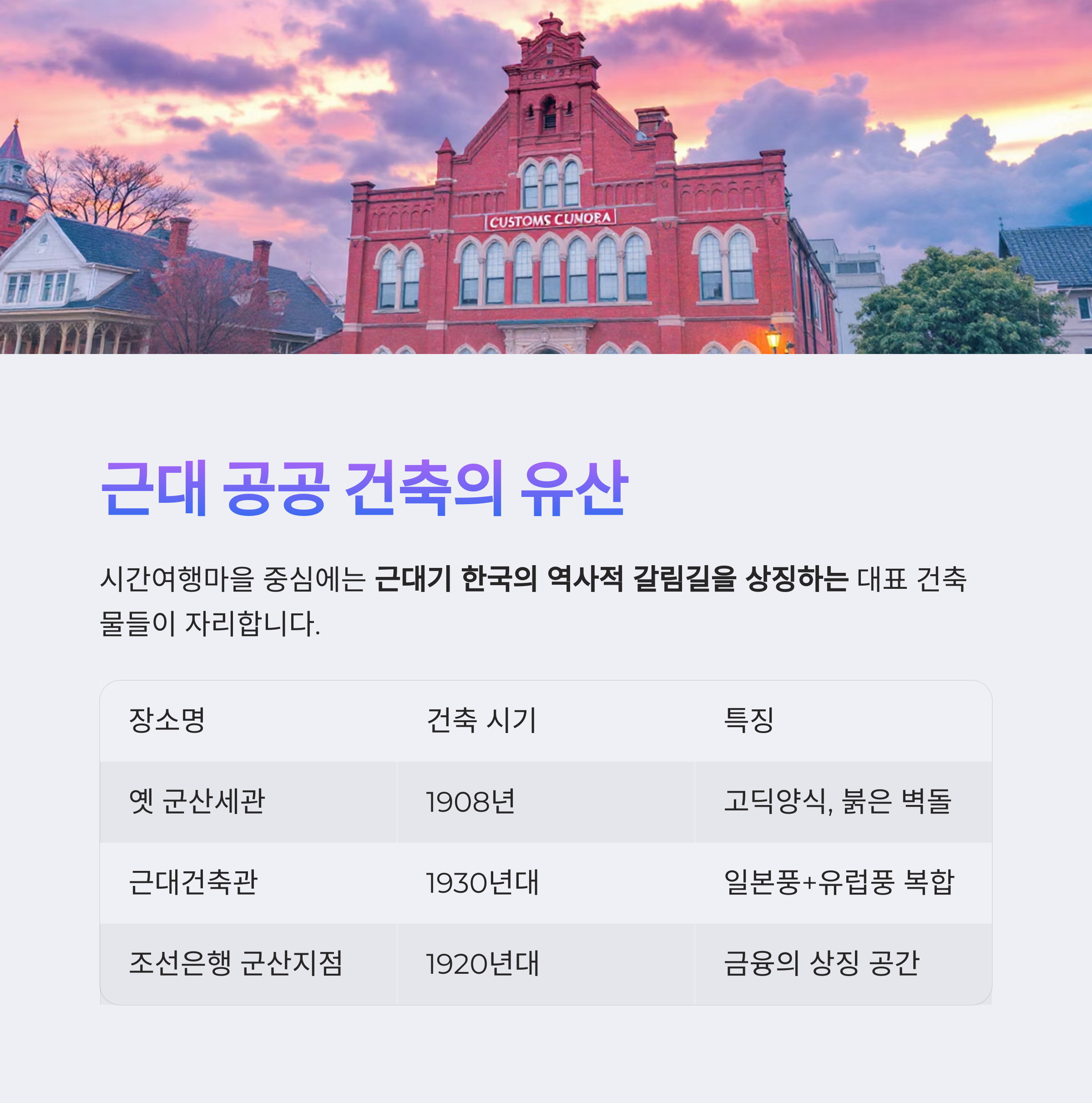 | 조선은행 군산지점 | 1920년대 | 금융의 상징 공간 |