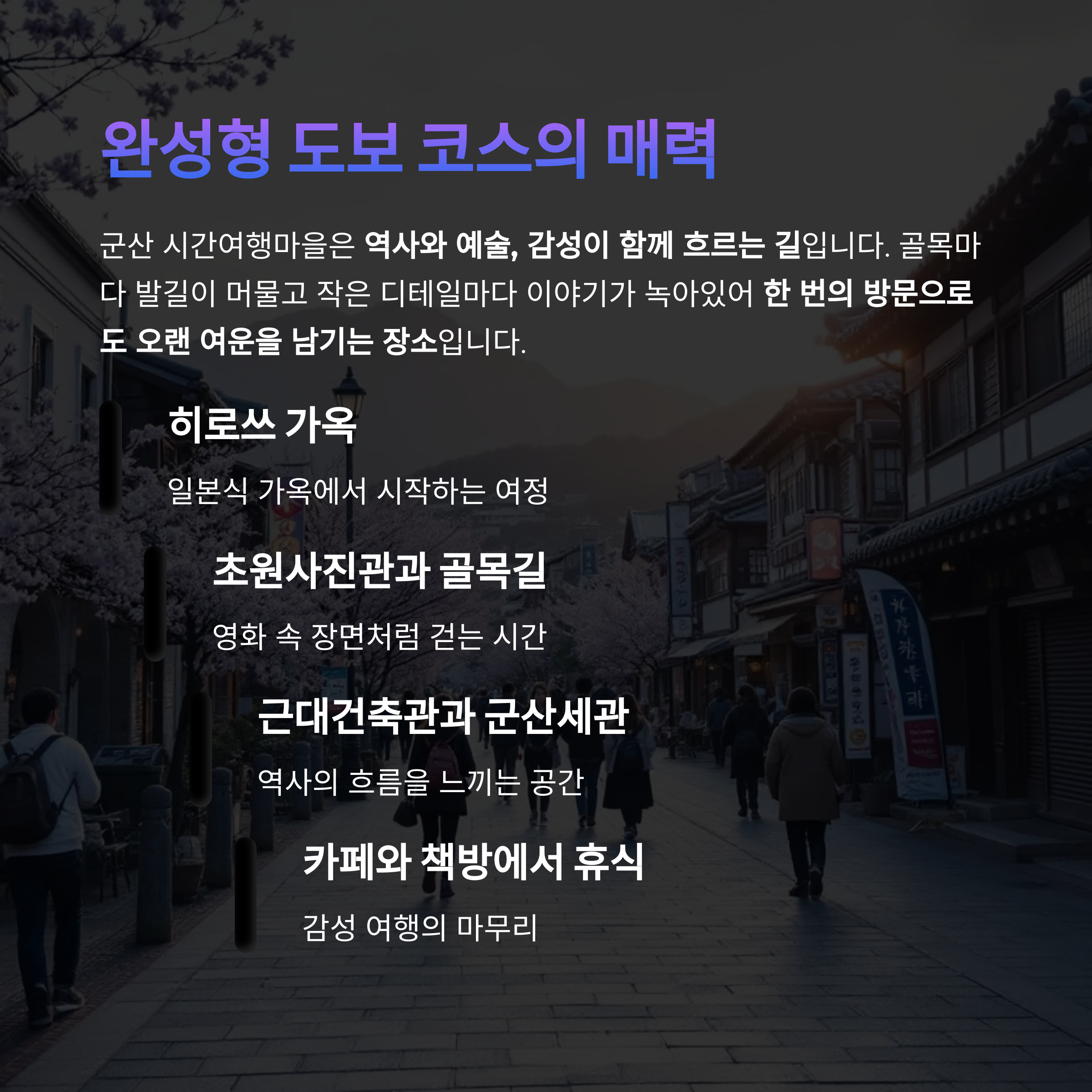 "군산의 시간은 건물이 말하고, 골목이 기억한다."
