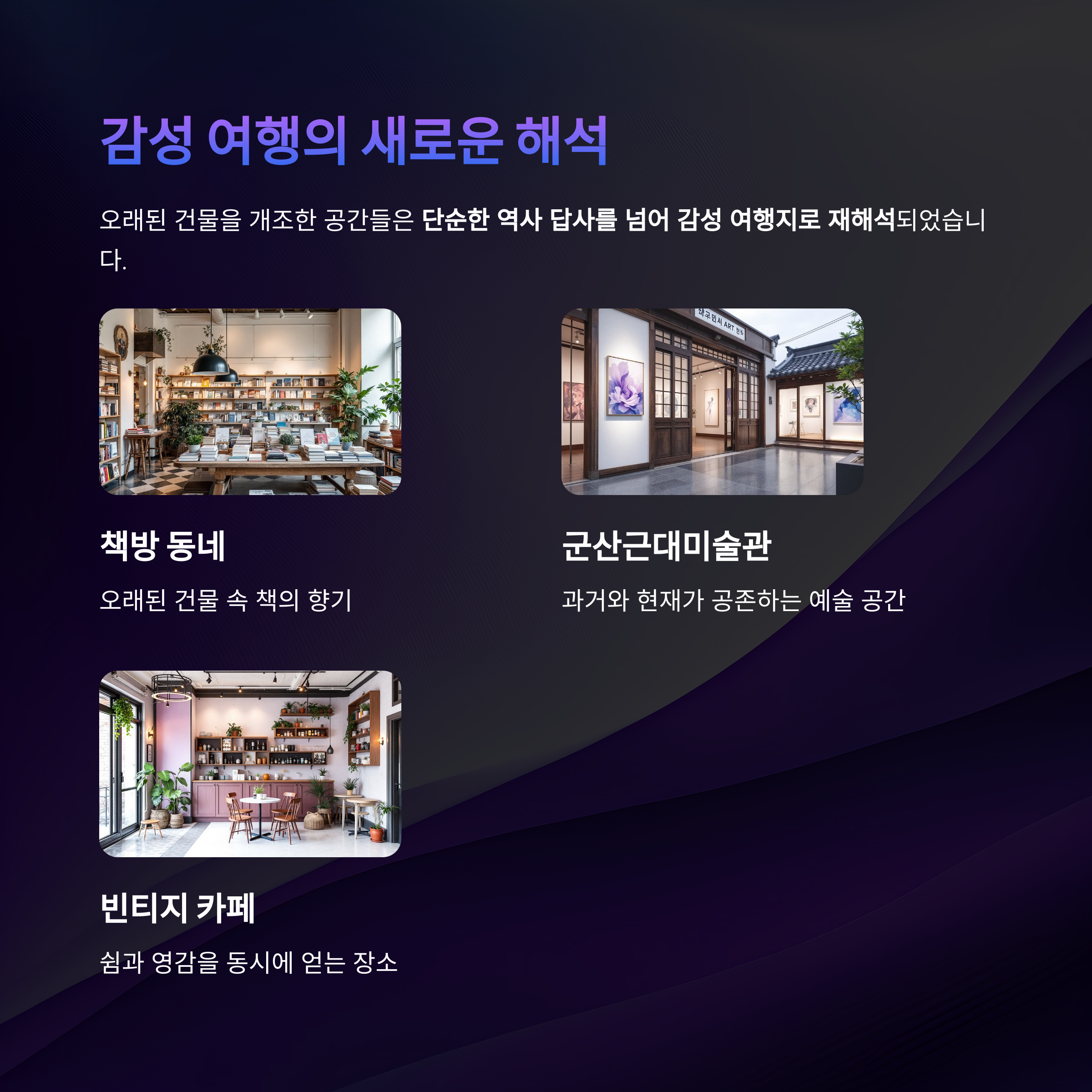특히 '군산근대미술관', '책방 동네', '빈티지풍 카페' 등은