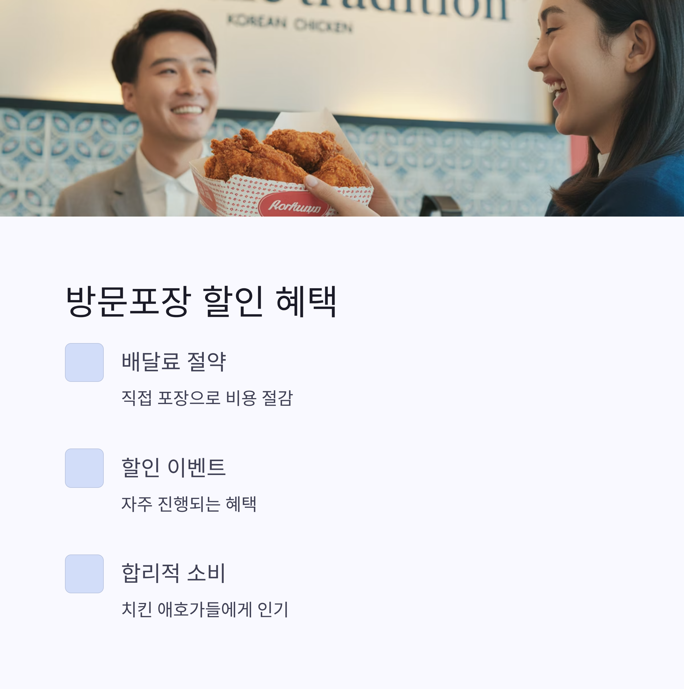 굽네치킨은 방문포장 시 일정 금액을 할인해 주는 이벤트가 자주 있어요. 배달료 없이 직접 매장에서 포장해 오면 가격 부담이 확 줄어들죠. 치킨을 자주 즐기는 분들에게는 꽤 쏠쏠한 혜택이에요.