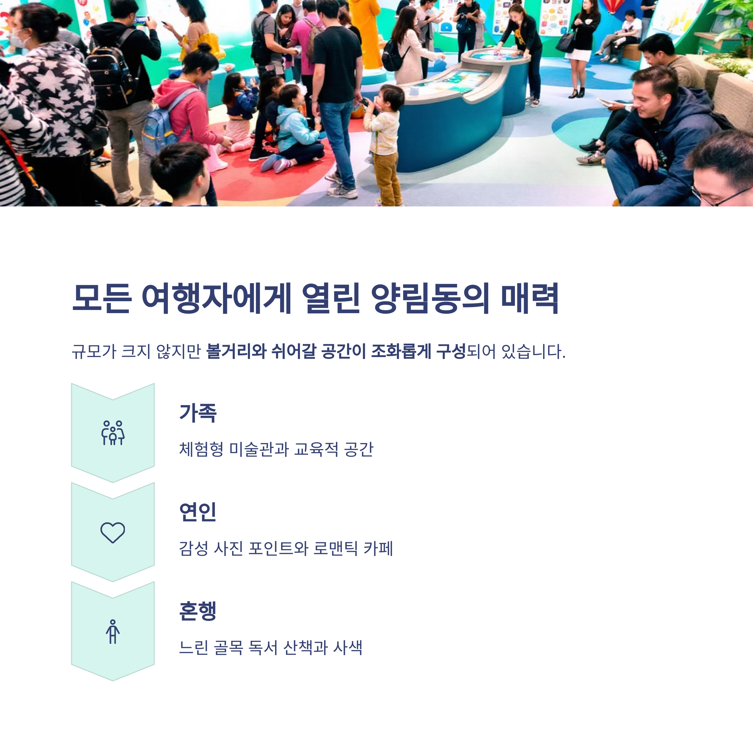 아이들과 함께라면 체험형 미술관, 연인이라면 감성 사진 포인트,