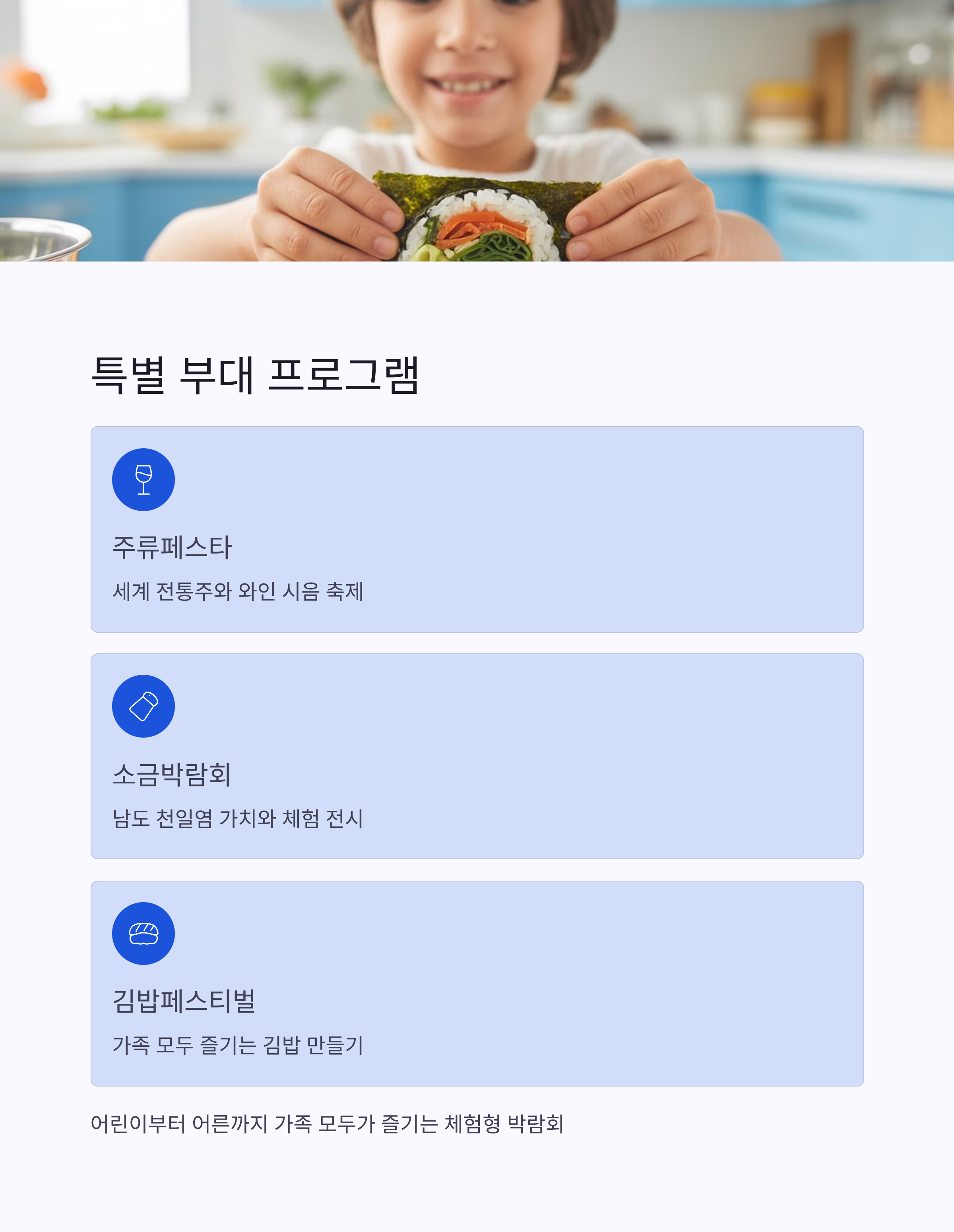 | 소금박람회 | 남도 천일염의 가치를 알리고 체험하는 특별 전시 |