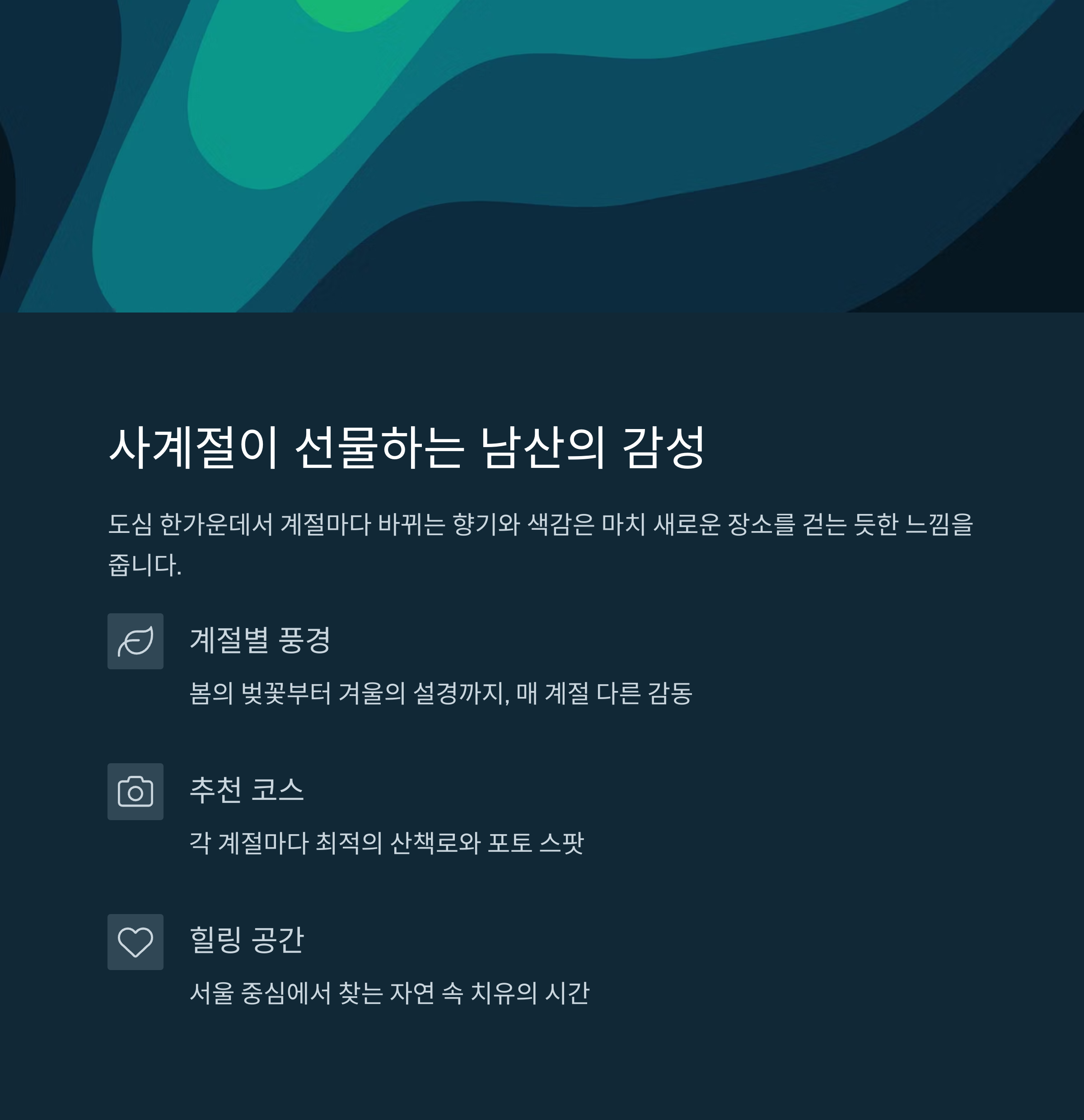 사계절이 들려주는 이야기를 따라 걸으며, 지금 이 순간을 온전히 느껴보세요.