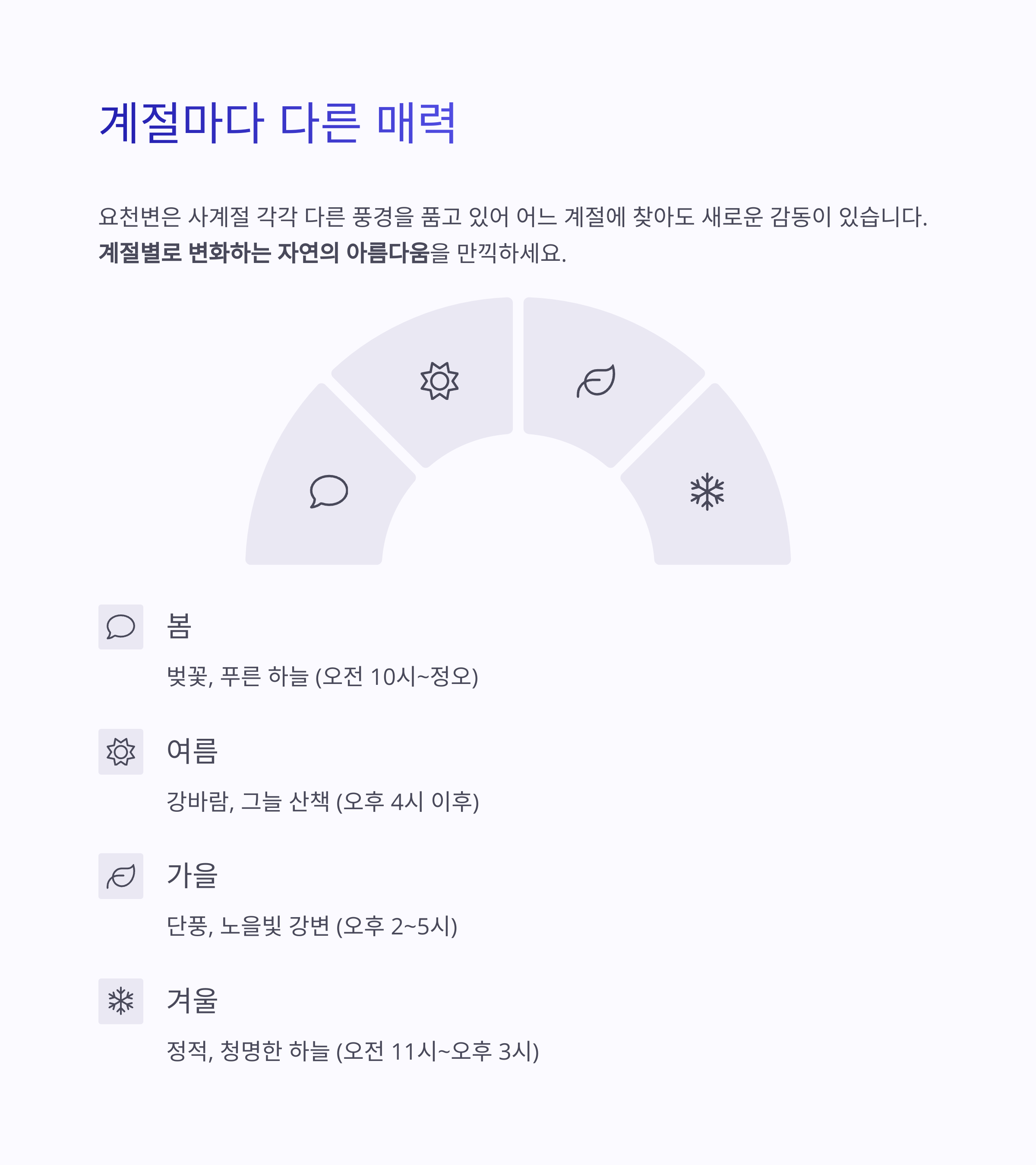 | 가을 | 단풍, 노을빛 강변 | 오후 2~5시 |