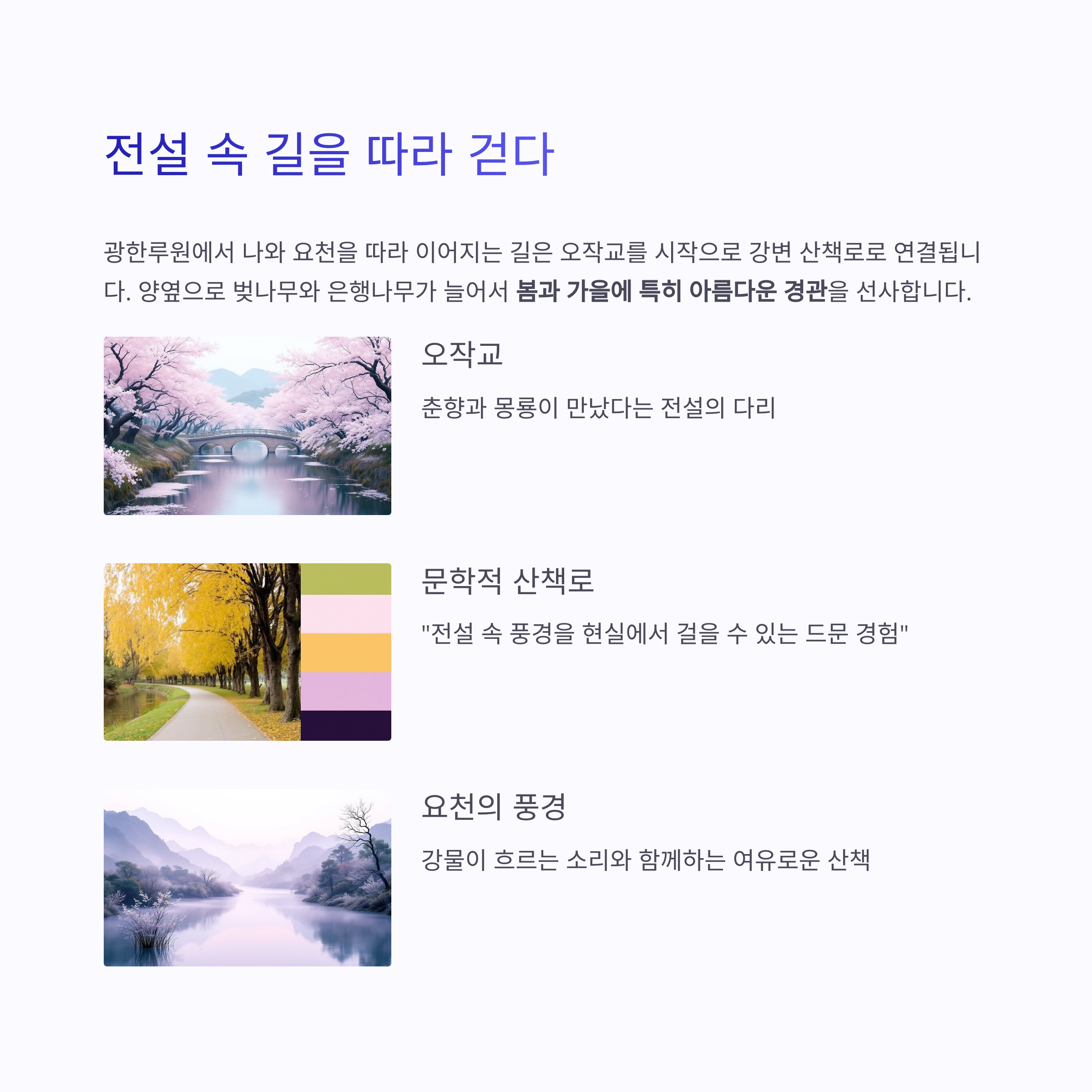 광한루원과 요천변 산책로의 주요 포인트, 계절별 풍경, 여행 팁을 중심으로