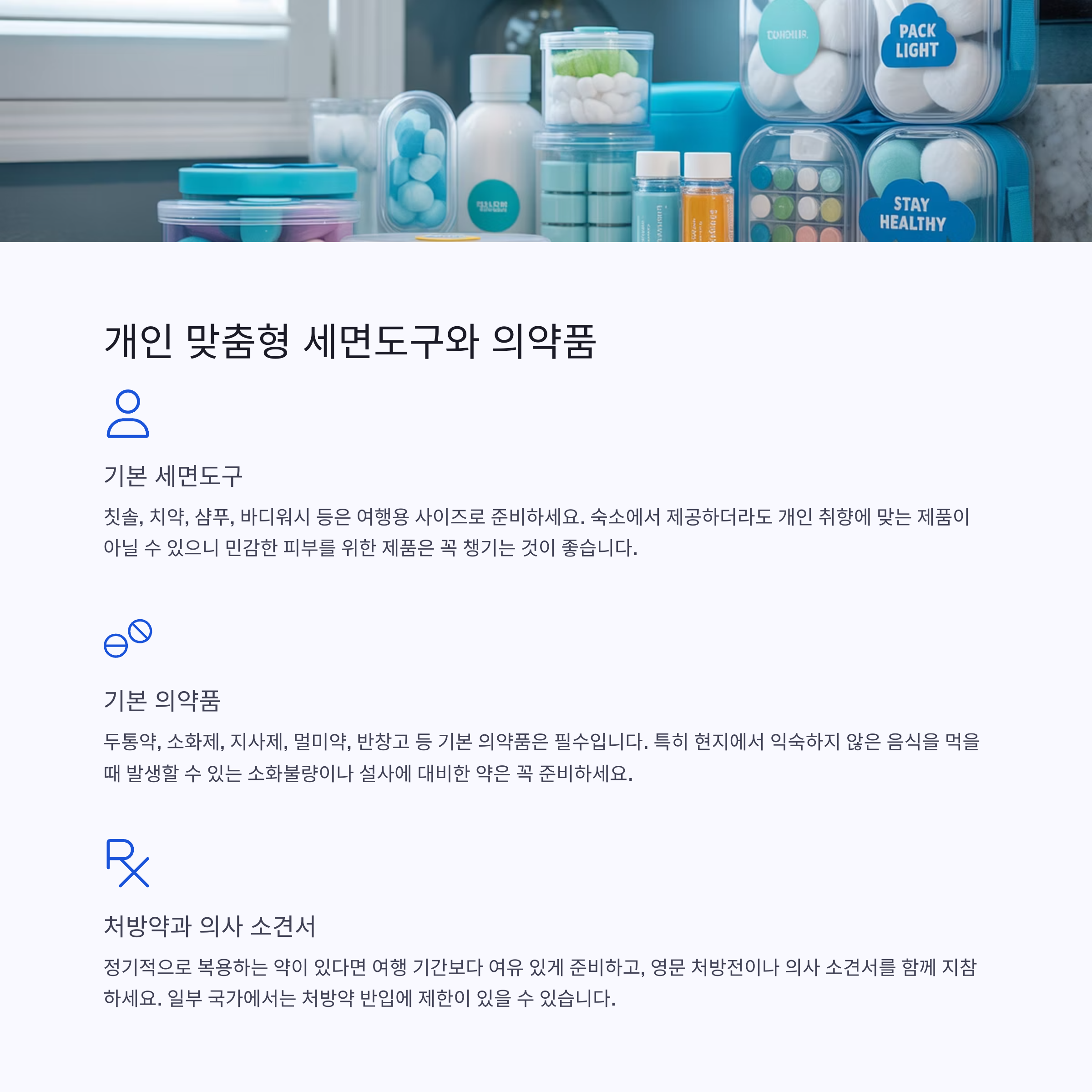 세면도구와 의약품은 개인 맞춤형으로