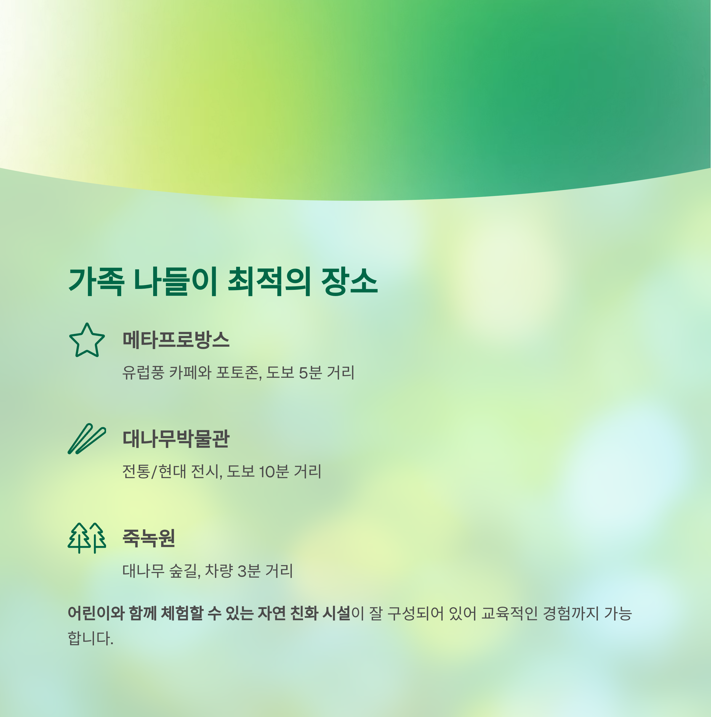 이곳은 도시의 소음을 잊게 만드는 자연 속 무공해 감성 공간입니다.