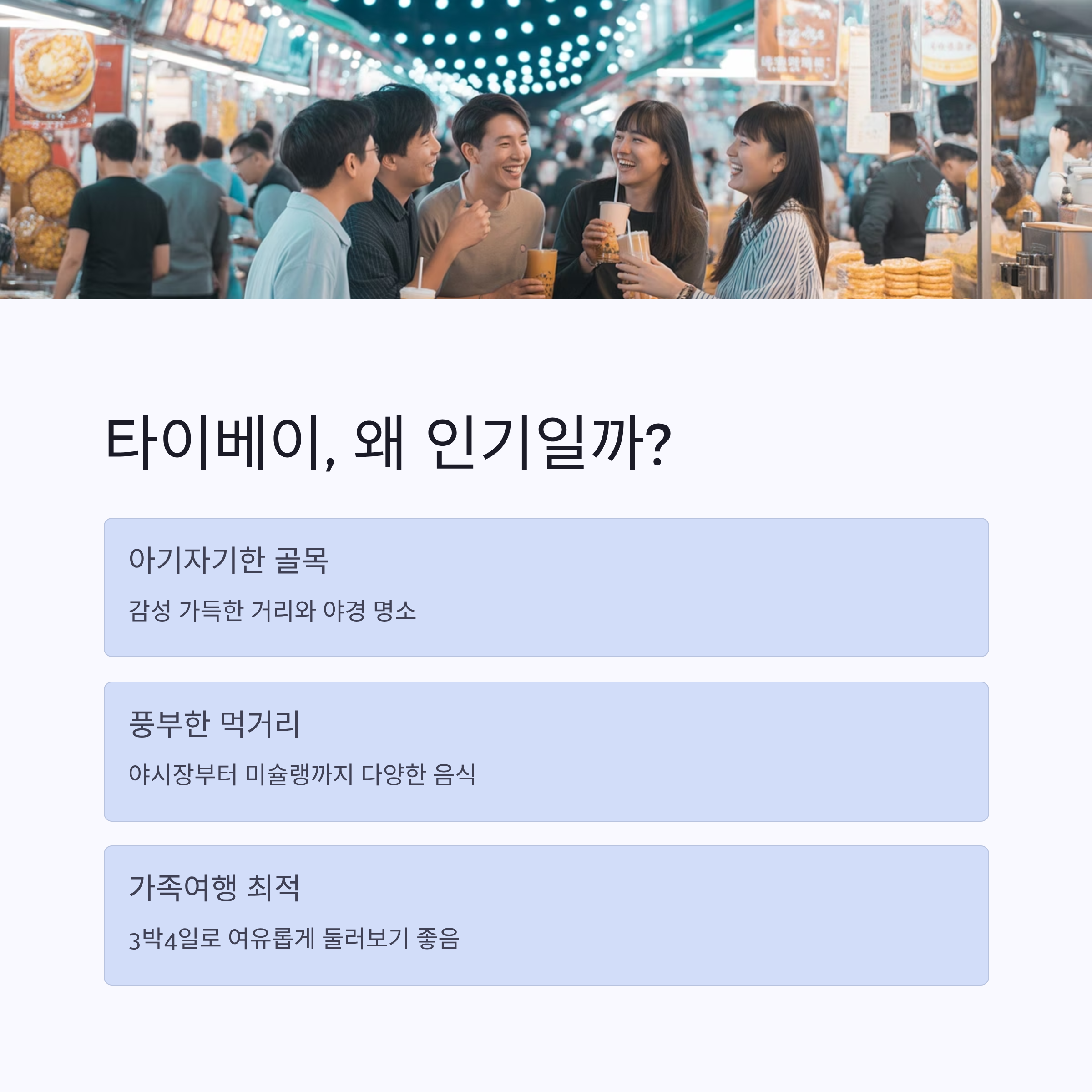 대만 타이베이는 아기자기한 골목부터 야경 명소, 그리고 먹거리가 넘쳐나는 도시입니다. 특히 3박 4일 일정은 타이베이와 근교 지역까지 여유롭게 둘러볼 수 있어 가족여행이나 자유여행 모두에 적합한 일정인데요. 이번 글에서는 항공권과 호텔을 포함한 전체 경비, 여행 중 꼭 가봐야 할 명소, 현지 물가 정보와 추천 맛집까지 실속 있게 알려드릴게요.