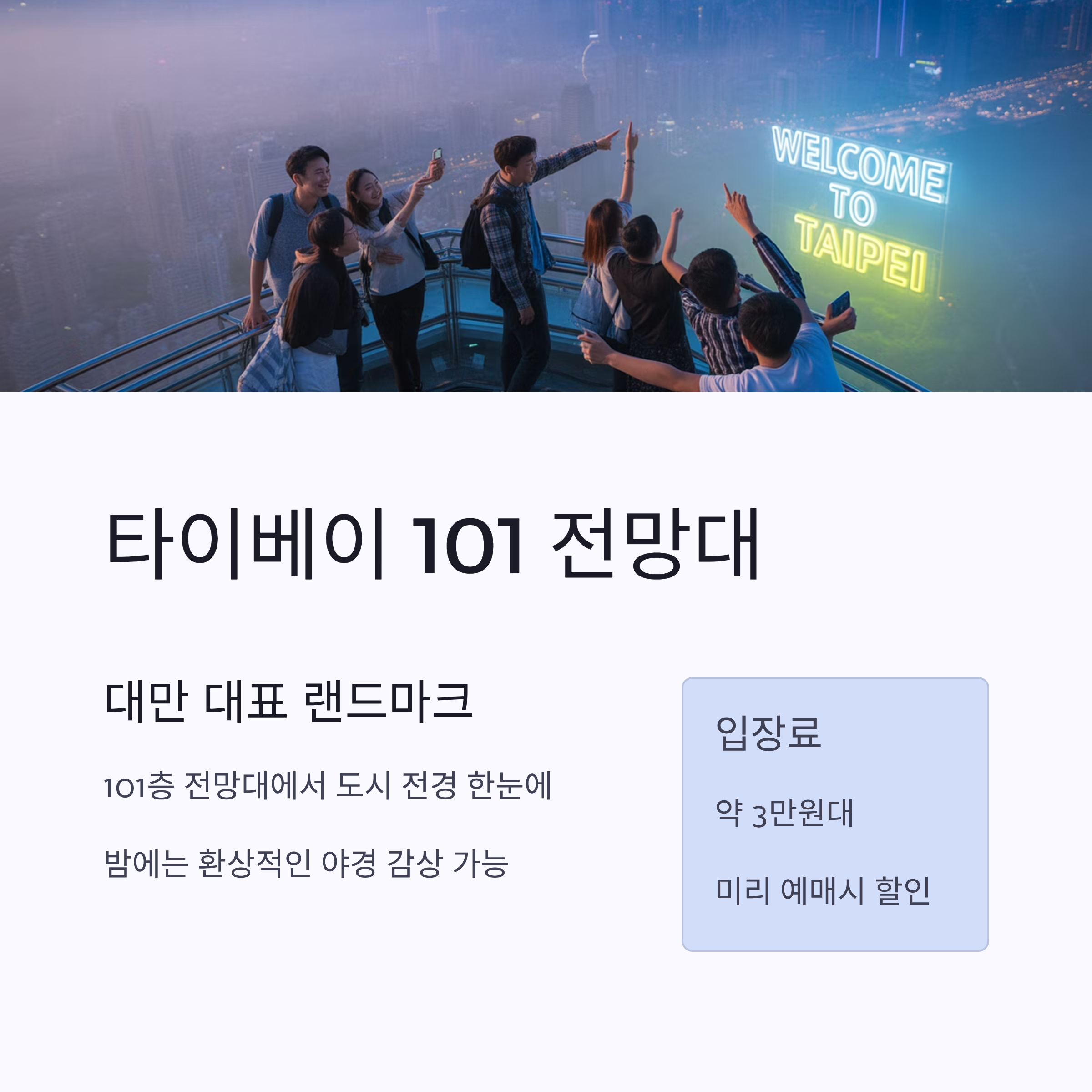 전망대 입장료는 약 800~1,000 NTD 수준(약 3만 원대).