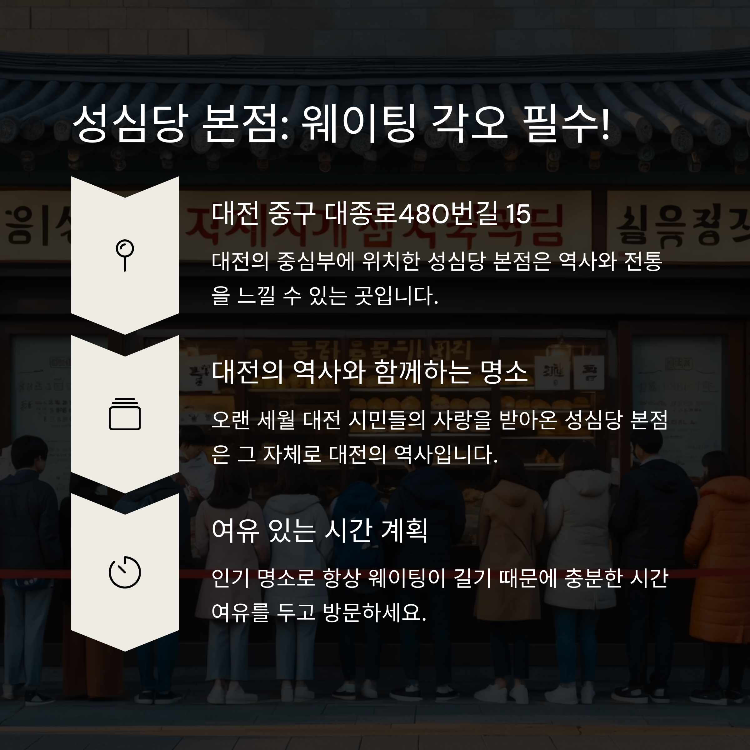 성심당은 대전의 대표적 관광 요소이자, 지역 주민뿐만 아니라 외지 손님들에게도 특별한 경험을 제공합니다.