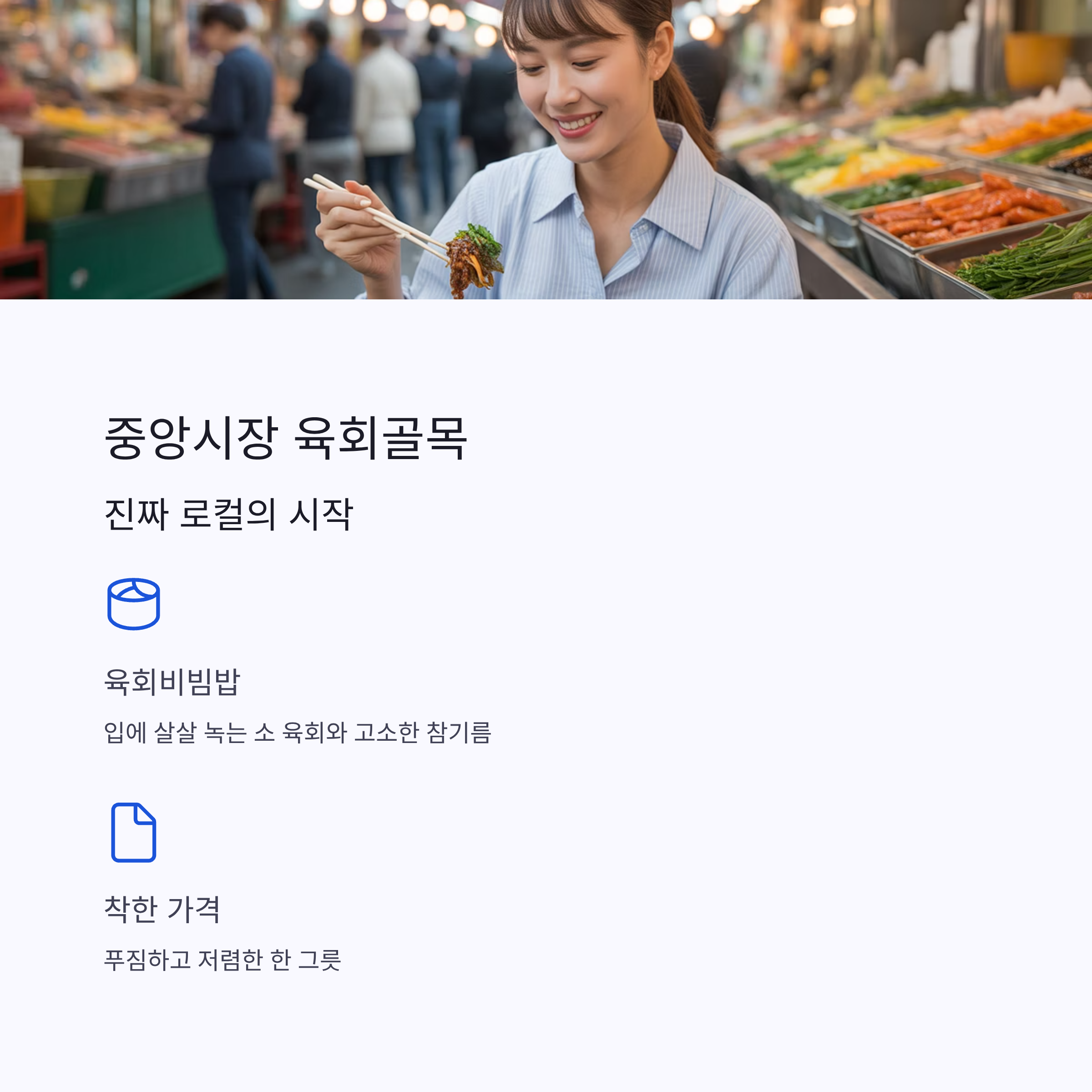 | 중앙시장 | 육회골목 | 육회비빔밥 |