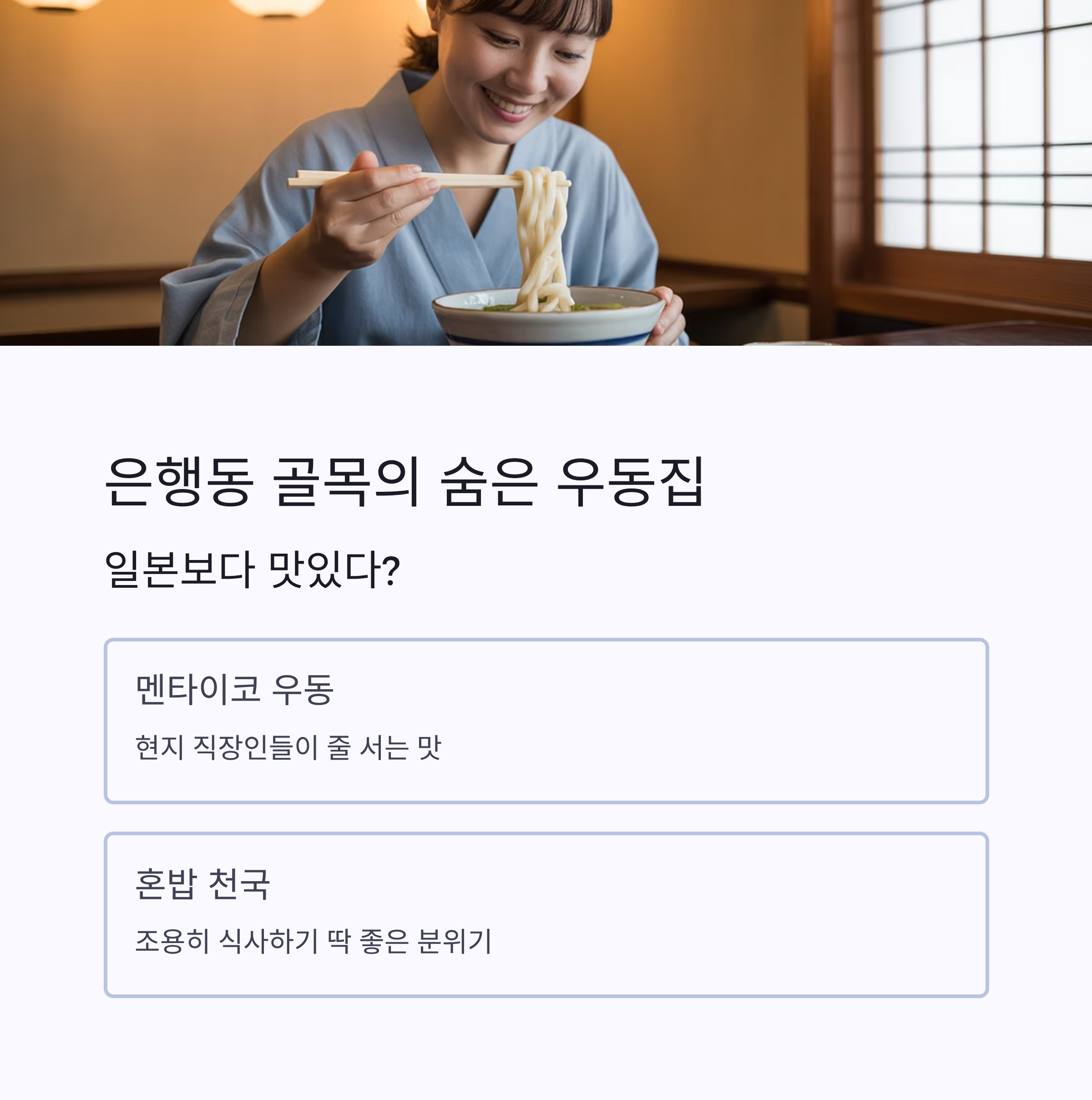 | 은행동 | 혼밥 우동집 | 멘타이코 우동 |