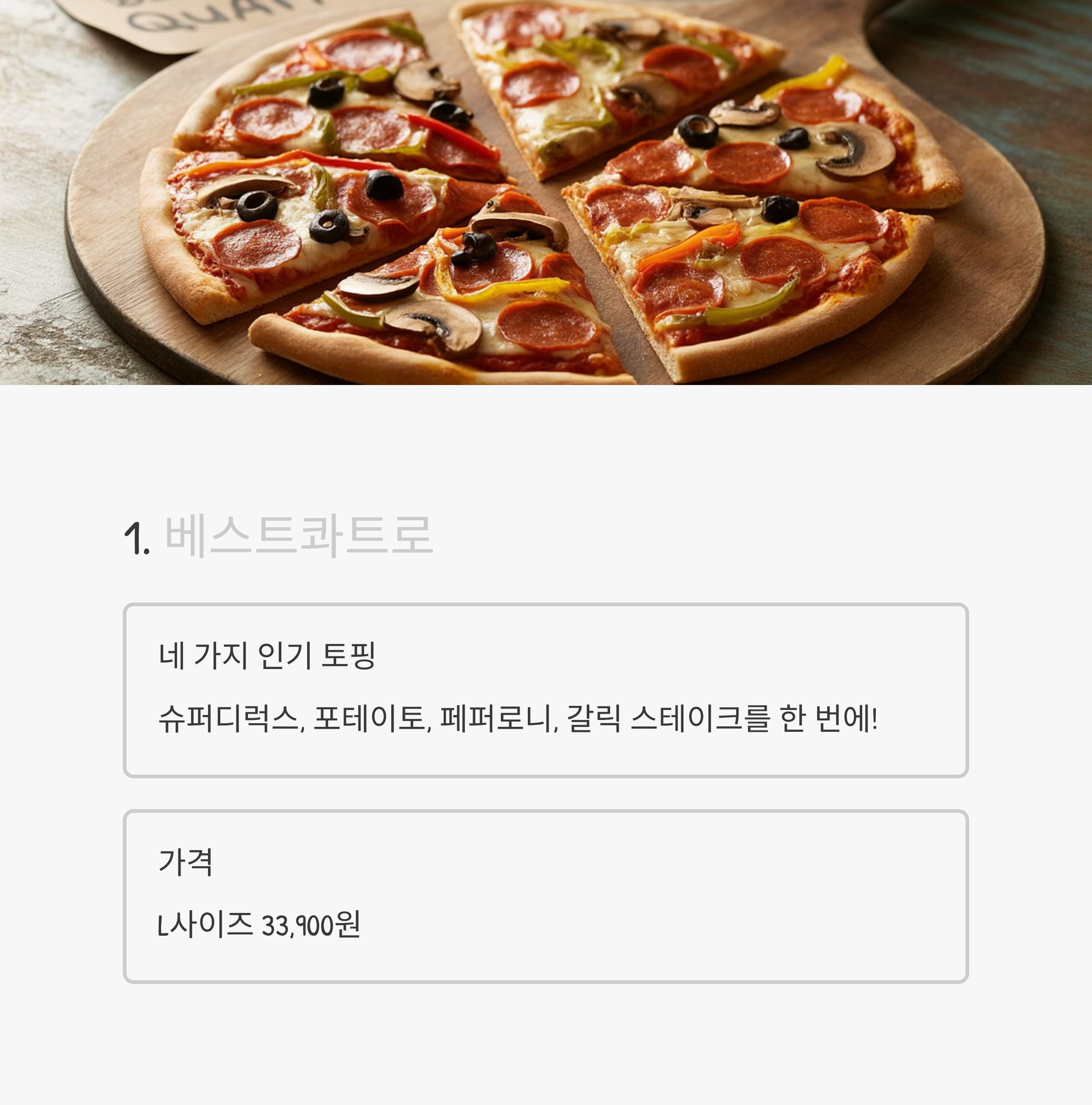 1. 베스트콰트로 피자 – 언제나 믿고 먹는 시그니처