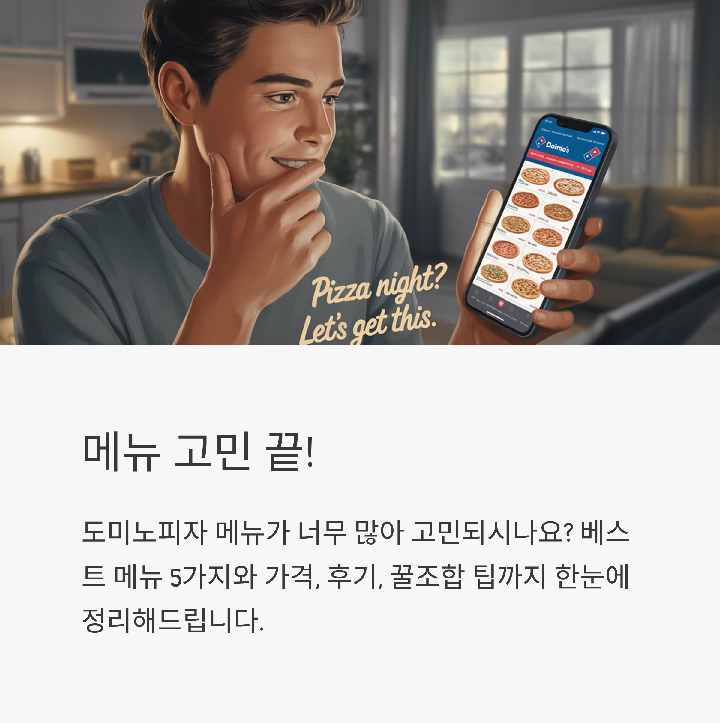 도미노피자 메뉴가 너무 많아 고민되시나요? 어떤 피자를 고르면 후회하지 않을지, 베스트콰트로는 왜 늘 인기 있는지 궁금하신 분들을 위해 도미노피자의 베스트 메뉴 5가지와 함께 가격, 후기, 그리고 꿀조합 팁까지 한눈에 정리해 드립니다. 도미노 마니아도 처음 주문하는 분도 이 글 하나면 메뉴 고민 끝입니다.