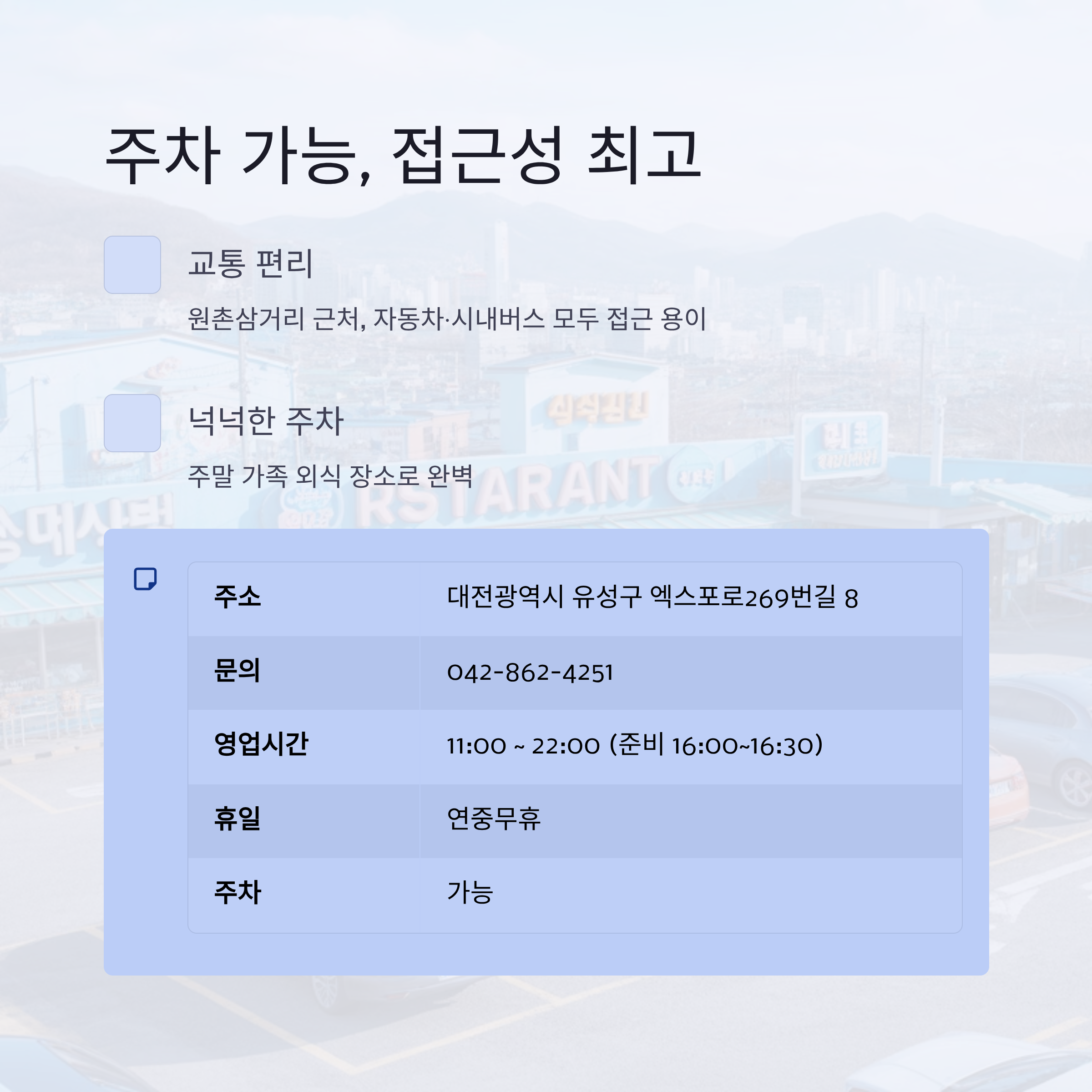주차도 넉넉해서 주말 가족 외식 장소로도 아주 좋아요.