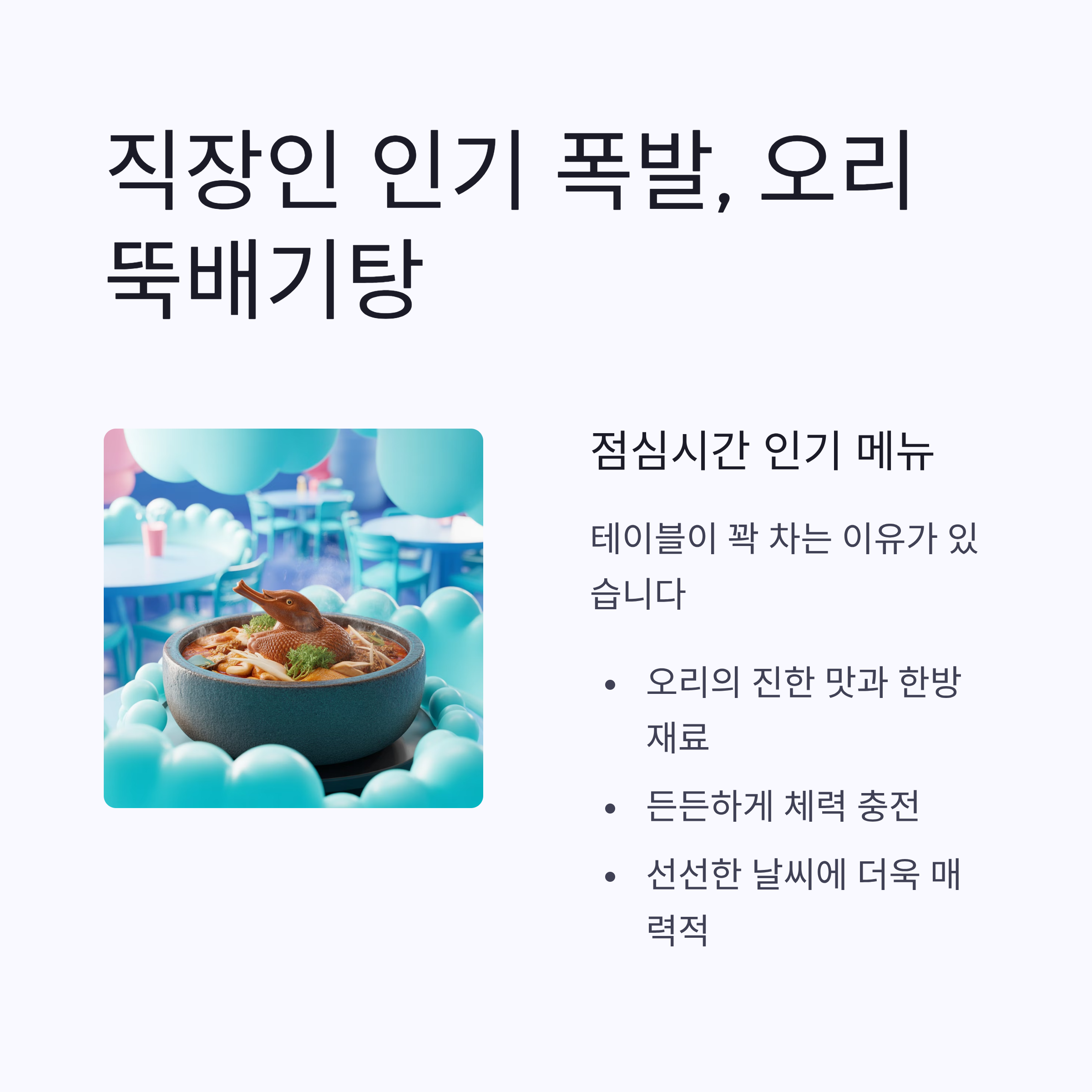| 오리뚝배기탕 | 점심 인기 메뉴, 든든한 한 끼 |