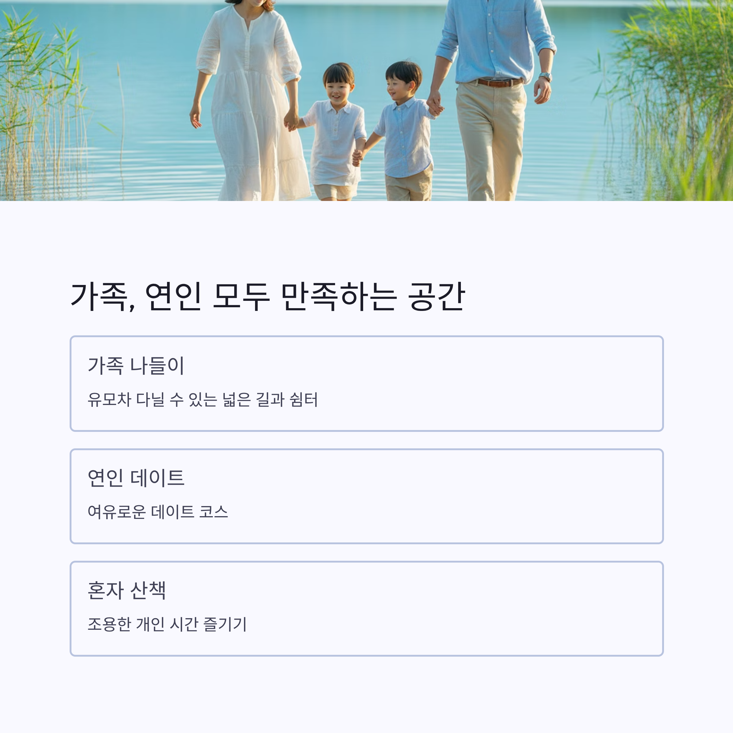 혼자서도 조용한 산책을 즐기기 좋은 곳입니다.